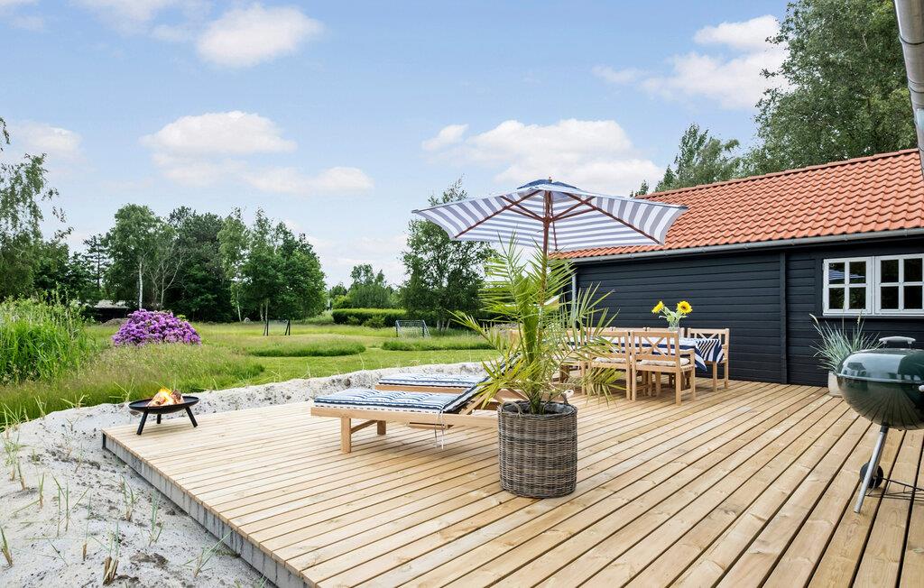 Den smukke træterrasse er det perfekte sted, hvis I gerne vil solbade eller grille og nyde jeres måltider udenfor. Her er der sol fra morgen til sen aften. Glæd jer også over den skønne have, hvor der er rigeligt med plads til aktiviteter og små gåture med børnene.