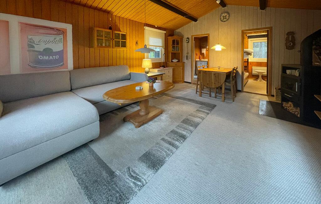 Denne hyggelige hytte tilbyder alt, hvad I behøver for en afslappende pause fra hverdagen. En komfortabel sofa, en brændeovn og et praktisk køkken hjælper jer med hurtigt at falde i ferietilstand. Slap af om eftermiddagen med en kop kaffe eller hav en hyggelig madlavningskonkurrence i køkkenet.