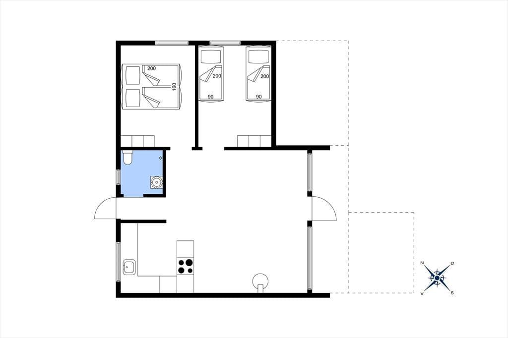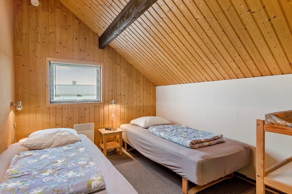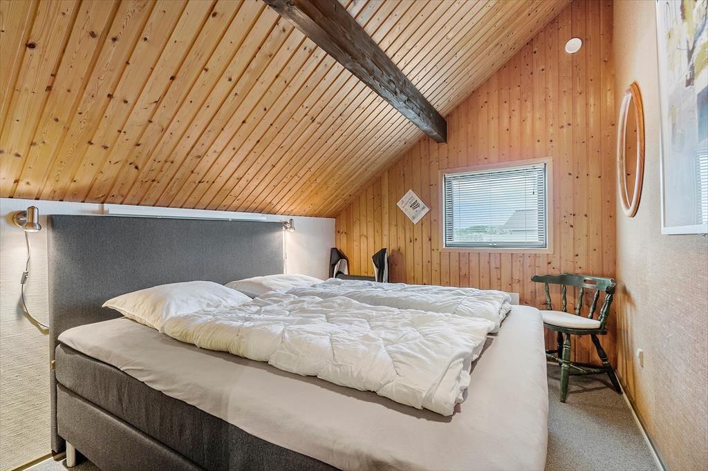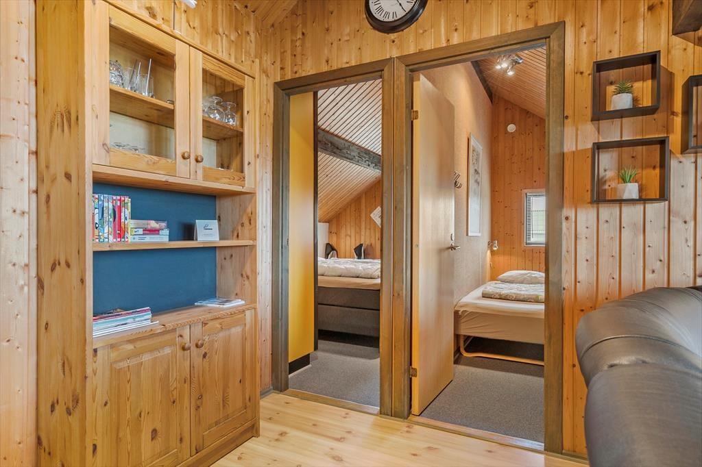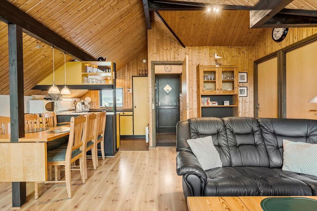 Sommerhuset er opført i 1976, og gennem årene er det blevet vedligeholdt med respekt for den originale stil og oprindelige indretning. Det kan for eksempel ses i stuen, der har loft til kip, umalede trælister på væggene og rustikke bjælkekonstruktioner – samt åben forbindelse til et rammekøkken, der har kombineret varmluftsovn og opvaskemaskine som del af de funktionelle boligløsninger. Når I sidder i stuens komfortable sofa, kan I se tv, nyde skæret fra brændeovnen og kigge ud på klitterne mod syd og vest. Ved entréen finder I husets badeværelse, og side om side ligger to gode soveværelser med i alt fire sengepladser. I huset er der for øvrigt babyseng, babystol og puslebord til rådighed, så de alleryngste feriegæster er der også taget hensyn til.