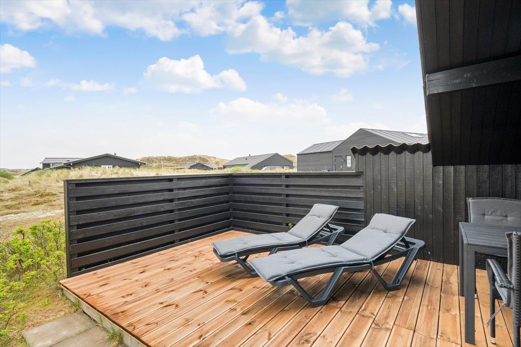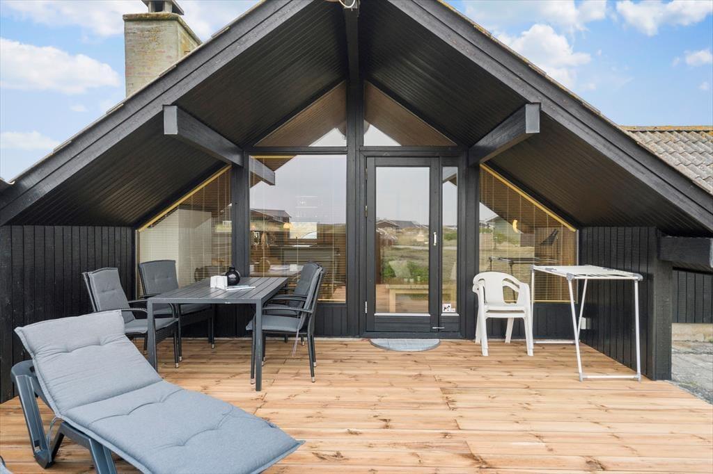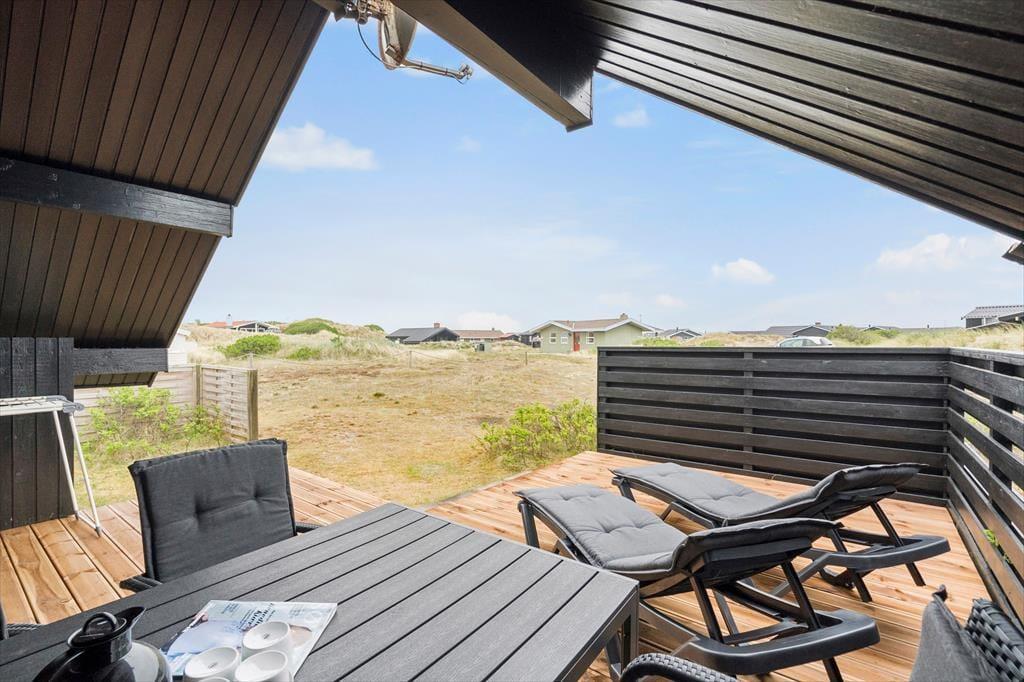 Fra stuen kan I se lige ud på husets sydøstvendte terrasse, og når solen står højt på himlen, er det oplagt at rykke driverlivet derud. Terrassen er stor og delvist overdækket, og et hegn skærmer udearealet af, så I kan finde læ, selvom der er brise fra nordvest. Om aftenen kan I grille, og hvis I får lyst til at se solnedgangen fra stranden, kan I hurtigt smutte derned.