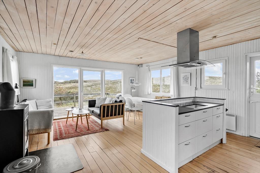Drømmer I om at have masser af plads omkring jer og smuk natur til alle sider, når I holder ferie? Så skal I sætte kursen mod dette hyggelige træsommerhus, der ligger på vidtstrakt naturgrund på næsten 15 hektar. Vesterhavet og Bjerregård Strand venter bare 400 meter væk, og mod øst kan I nyde den smukke udsigt over det åbne land mod Ringkøbing Fjord.