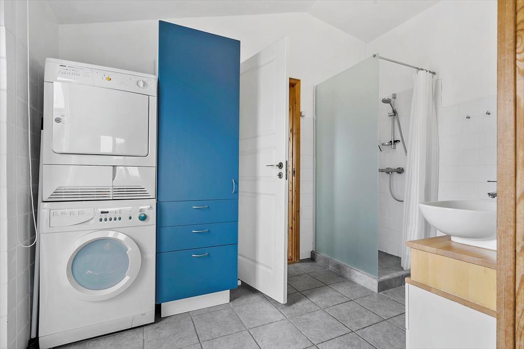 Ikke kun fra stuen, men fra alle soveværelser og badeværelset har I direkte adgang til det fri. Med andre ord kan I hurtigt smutte ud for at trække frisk luft og nyde solen på terrasserne, der ligger både øst, syd og vest for sommerhuset. Takket være grundens imponerende størrelse er der langt til naboerne, og I kan være helt jer selv, når I slikker sol i liggestolene, griller og tager de naturskønne omgivelser helt ind. Hvis I medbringer et ladekabel, er der CEE-stik til elbilen, og har I egen havkajak eller lignende, kan I glæde jer over at have brugsret til en lille fjordhavn.