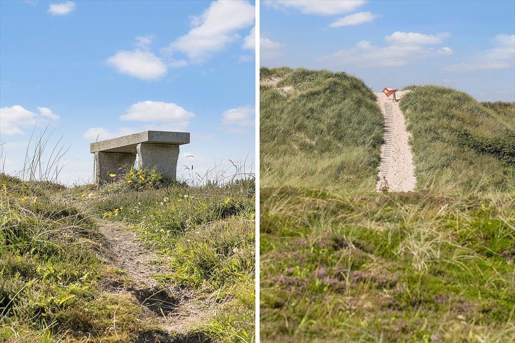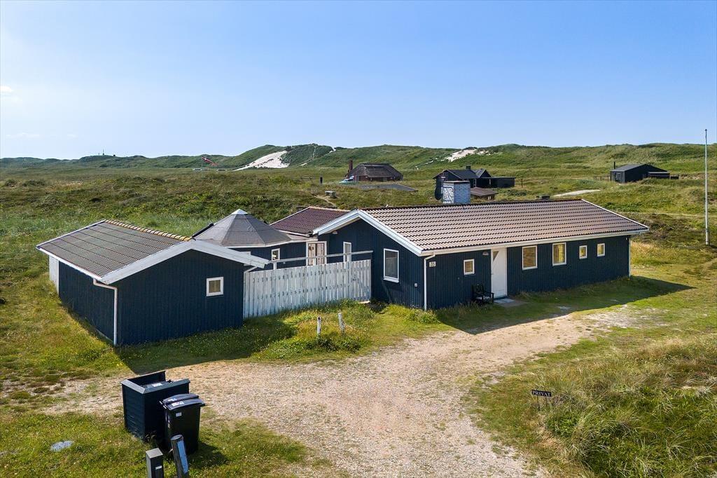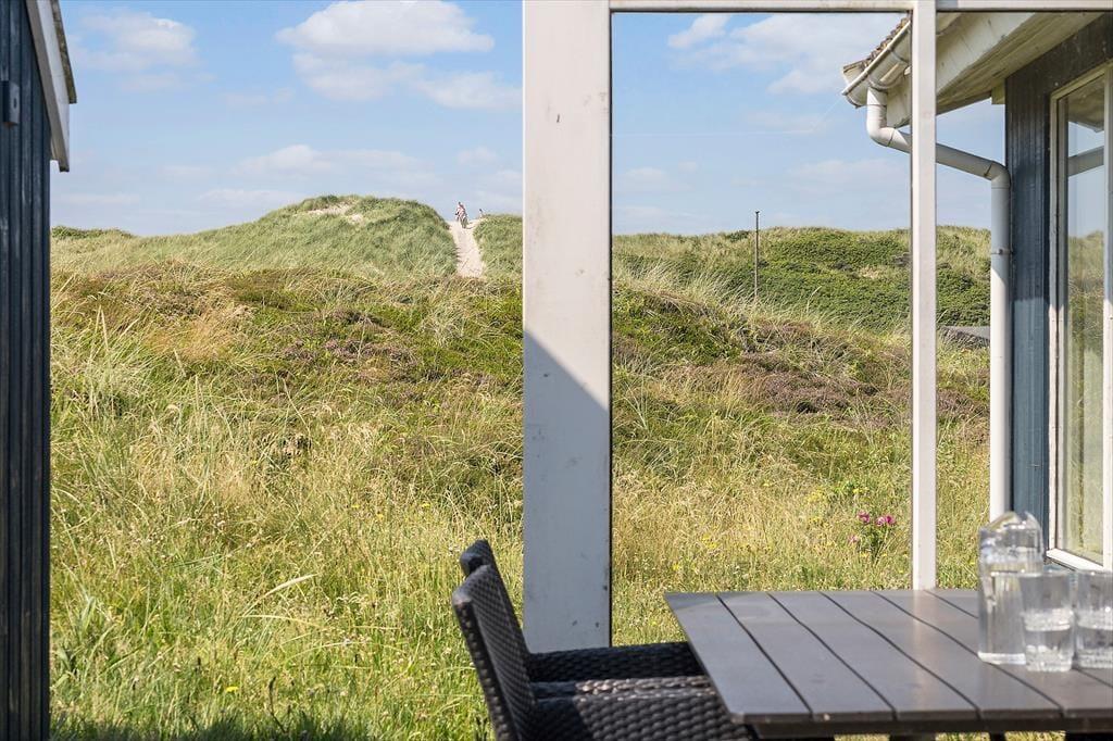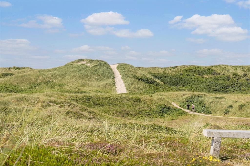 Sommerhuset ligger roligt og naturskønt placeret på en lukket vej i Bjerregård. Der er ingen grund til at finde hverken cykler eller bilen frem, når I vil ned på stranden, for I skal bare gå en ganske kort tur gennem det kuperede landskab, før I står på toppen af klitterne og kigger lige ud på Vesterhavets bølger. Her i den sydlige ende af Holmsland Klit har I desuden kort afstand til Ringkøbing Fjord mod øst, og Bjerregårds købmand ligger bare et par kilometer væk mod nord. I Nymindegab kan I blandt andet spise på den lokale kro, og hvis I vil ud i naturen, kan I fortsætte til det store fuglereservat Tipperne. Hvis I kan lide at surfe, fiske eller bare får lyst til en flot køretur, skal I køre nordpå til Hvide Sande midt på Holmsland Klit.