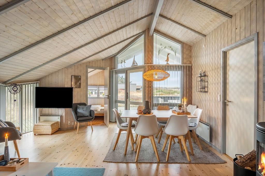 Sommerhus i Bjerregård, Vestjylland, med plads til 6 voksne og 2 husdyr. Der er en hyggelig indretning med bl.a. brændeovn, og du finder desuden vaskemaskine og opvaskemaskine i boligen.
