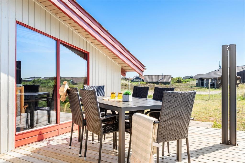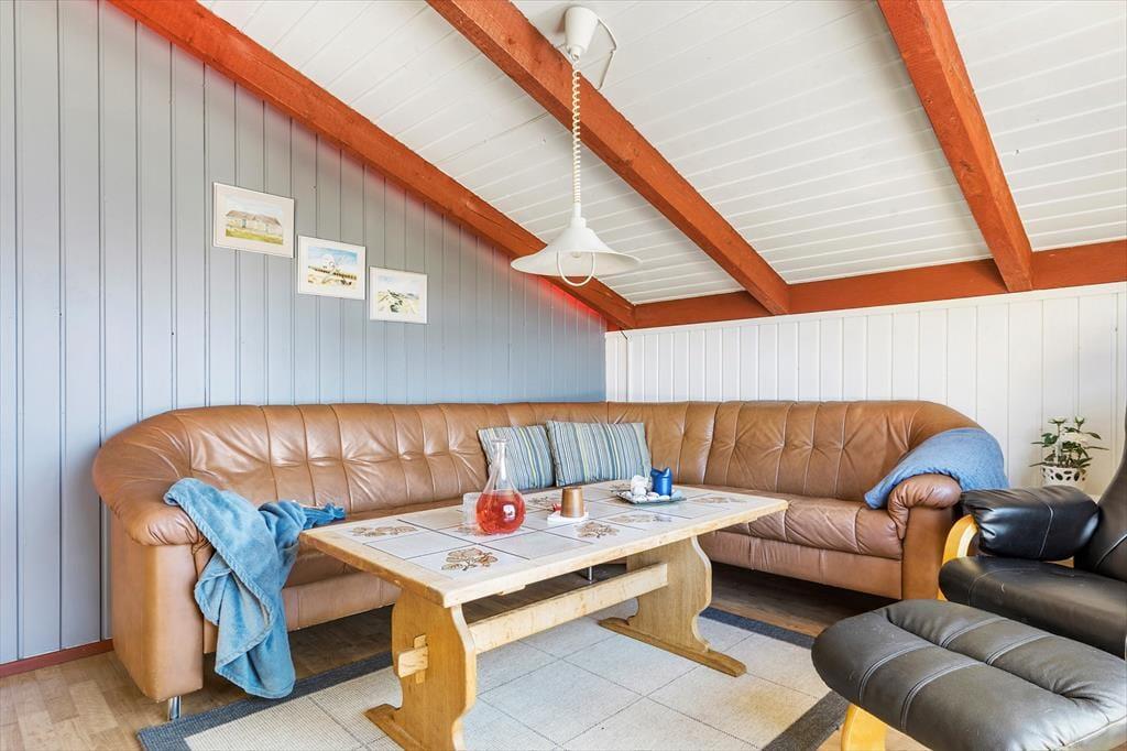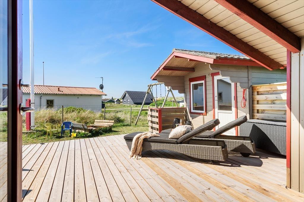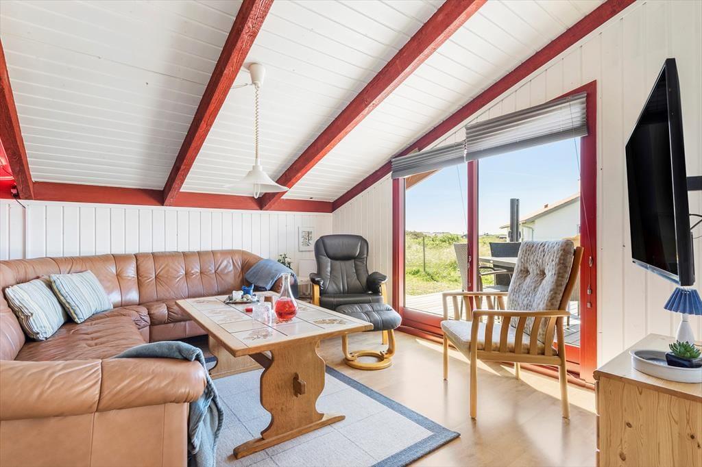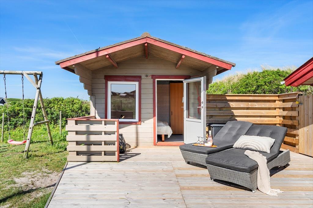 Du kan se frem til en skøn og afslappende ferie i dette dejlige sommerhus, der ligger bare 350 meter fra Vesterhavet og Bjerregårds dejlige sandstrand. Huset har en rigtig hyggelig indretning, og terrassen er et skønt sted at nyde solen – når du altså ikke bygger sandslotte på stranden eller er ude for at cykle, vandre eller fiske på Holmsland Klit.