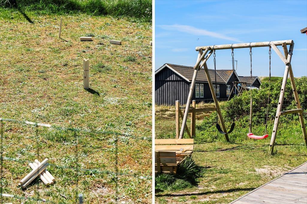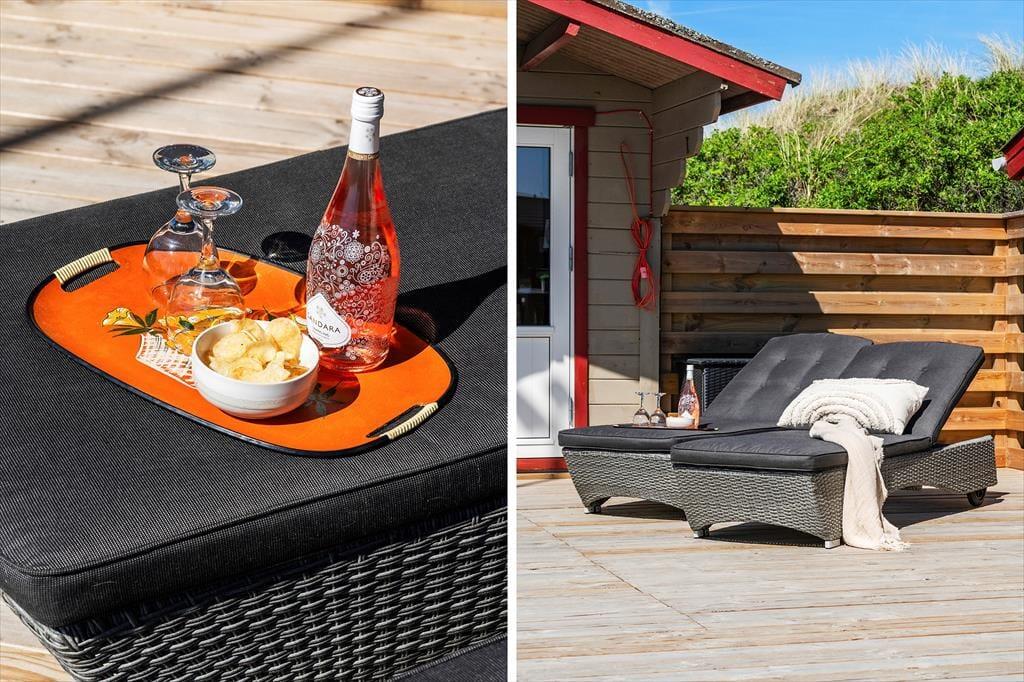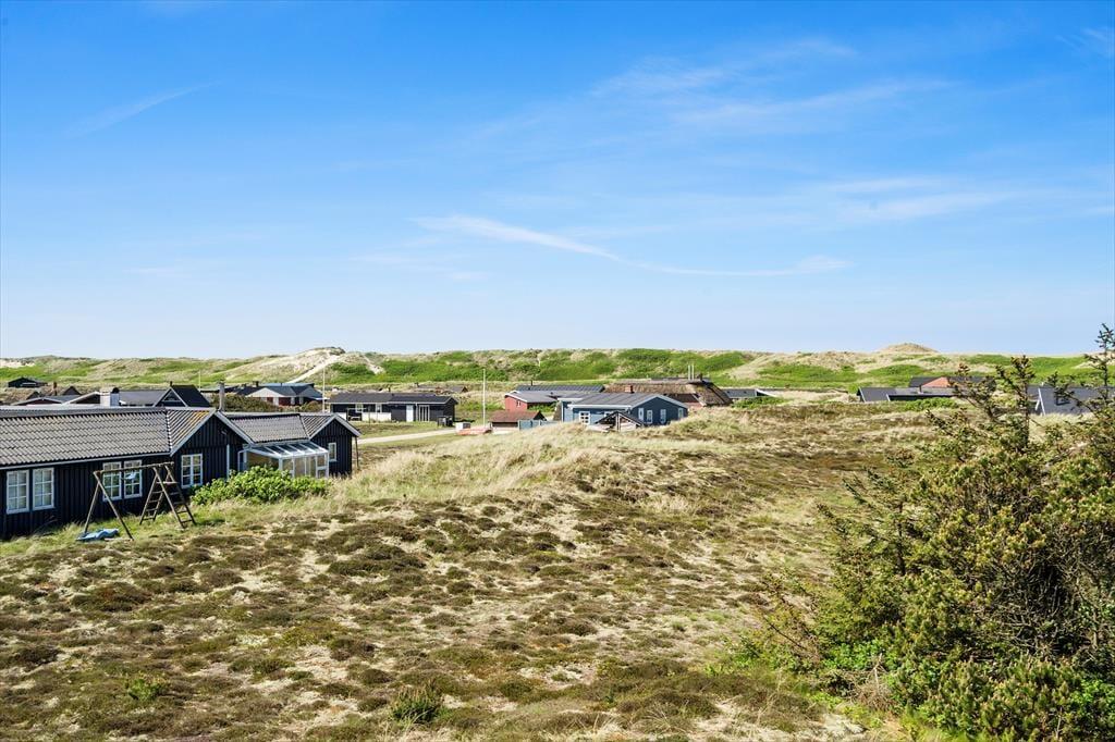 Rundt om huset breder en stor naturgrund sig, og det er en dejlig oase for både børn og voksne – ja, selv hunden får det godt, hvis du har sådan én med, for en stor del af græsplænen og hele terrassemiljøet er indhegnet, så de firbenede familiemedlemmer kan gå frit. Børnene kan lege i sandkassen eller gynge, mens de voksne får en kop kaffe lige i nærheden, og alle kan samles til solbeskinnede frokoster og lækre aftensmåltider tilberedt på grillen. Når solen gør sig klar til at gå ned, kan I gå op på den høje klittop, der løfter sig lige vest for huset. Herfra har I en flot udsigt over området og kan se mod havet – hvis altså ikke I smutter helt ned på stranden for at nyde solnedgangen fra allerførste parket.
