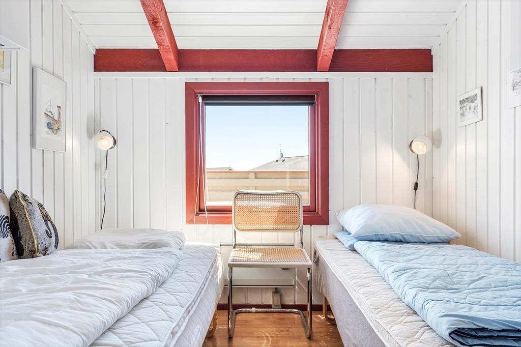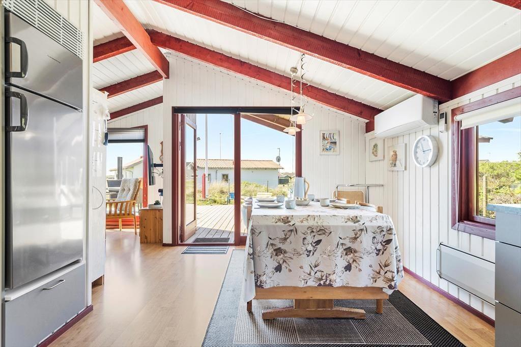 Sommerhuset har en ideel beliggenhed i Bjerregård for dig, der drømmer om fred og ro på ferien såvel som smuk natur. Gåturen til stranden tager bare fem minutter, så du kan hurtigt være fremme, uanset om du vil have en hurtig dukkert eller slænge dig på et strandtæppe i timevis – og du kan også se frem til skønne vandreture, enten her i vandkanten eller i Holmslands Klits lyng- og marehalmsklædte landskab. Området er godt at cykle i, og du kan endda tage hele turen rundt om Ringkøbing Fjord, hvis du gerne vil have nogle kilometer i benene. I Bjerregård er der en købmand, og hvis du vil invitere familien ud at spise, kan turen oplagt gå til enten Nymindegab eller Hvide Sande.