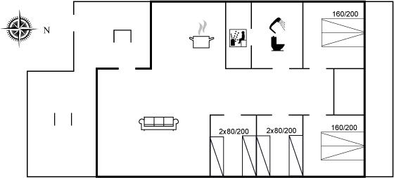 Der er i alt 4 soveværelser fordelt med 2 værelser med nye dobbeltsenge og 2 værelser med 2 nye enkeltsenge i hvert værelse. På hvert værelse er der en medium madras og en hård madras. Med de nye dyner og puder er der mulighed for at få en god nats søvn efter dagens oplevelser i den friske luft.