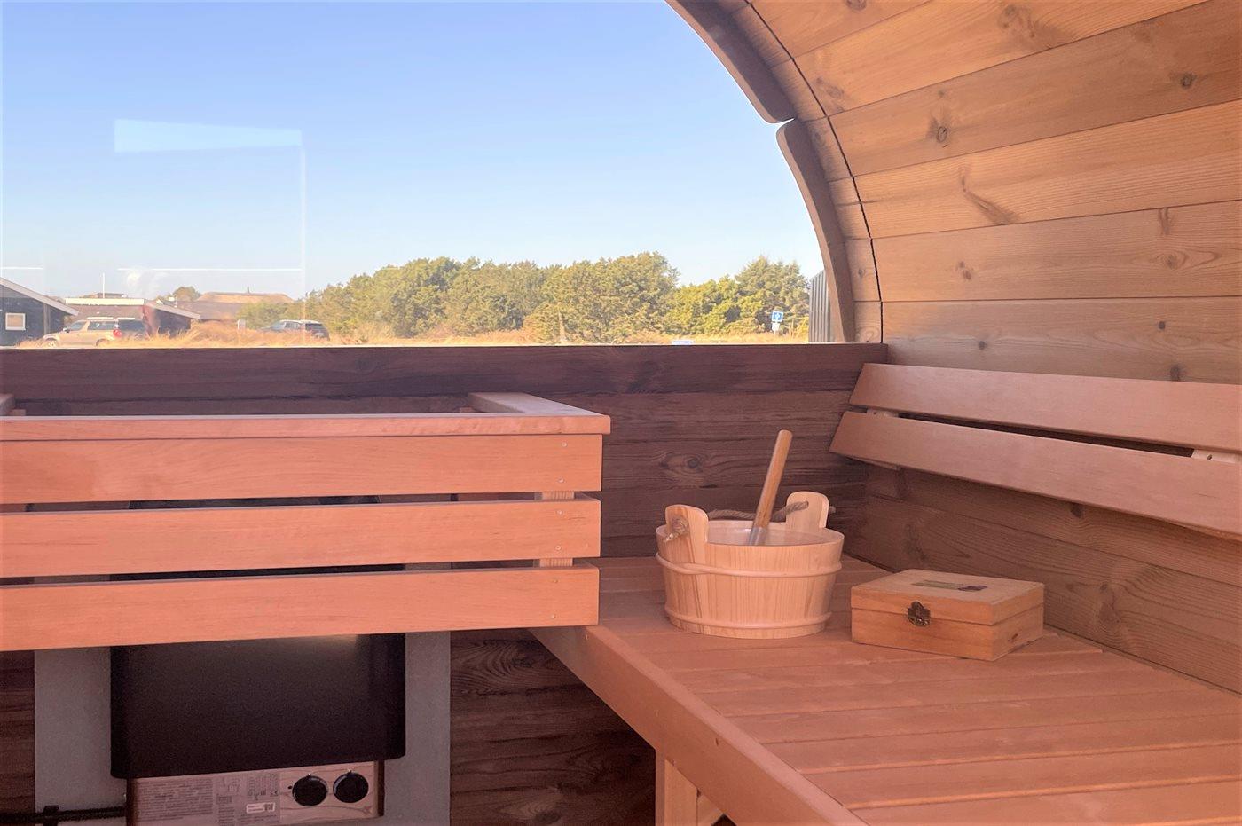 I Bjerregårds smukke klitlandskab ligger dette dejlige feriehus. Huset er nyrenoveret i 2021 både udvendigt og indvendigt, og det oser af en lækker ferie, hvor man straks vil føle sig hjemme i de lyse og lækre omgivelser. Skal der skrues op for selvforkælelsen kan der slappes af i vildmarksbadet og saunatønden, der har vindue mod solnedgangen over Vesterhavet. Det er en stor oplevelse både sommer og vinter. Desuden byder feriehuset på en dejlig 80 m² stor, lukket terrasse, hvor børn og hunde trygt kan boltre sig.