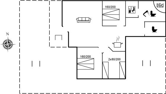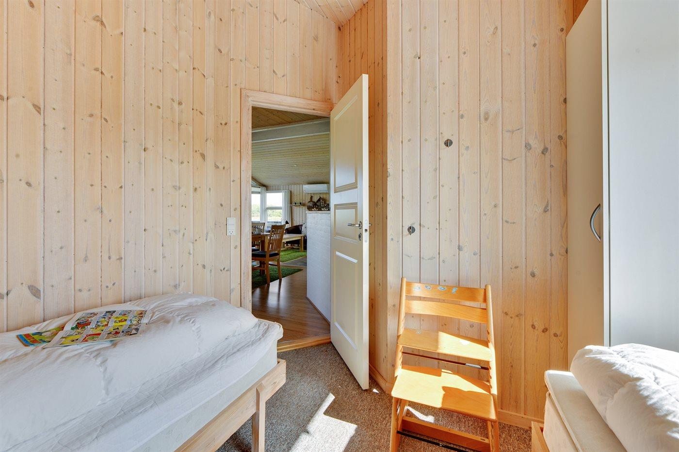 Der er i alt 3 soveværelser. Sovepladserne fordeler sig på: 4 sovepladser i dobbeltsenge. 2 sovepladser i enkeltsenge.