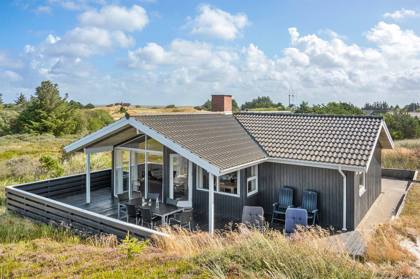 Drømmer I om at tilbringe jeres ferie i et unikt beliggende og hyggeligt indrettet sommerhus med en fantastisk og ugenert udsigt over klit- og hedelandskabet, så er dette sommerhus det helt rigtige valg. Her kan I nyde fred, ro og privatliv - omgivet af naturens åbne vidder og smukke skiftende lys.