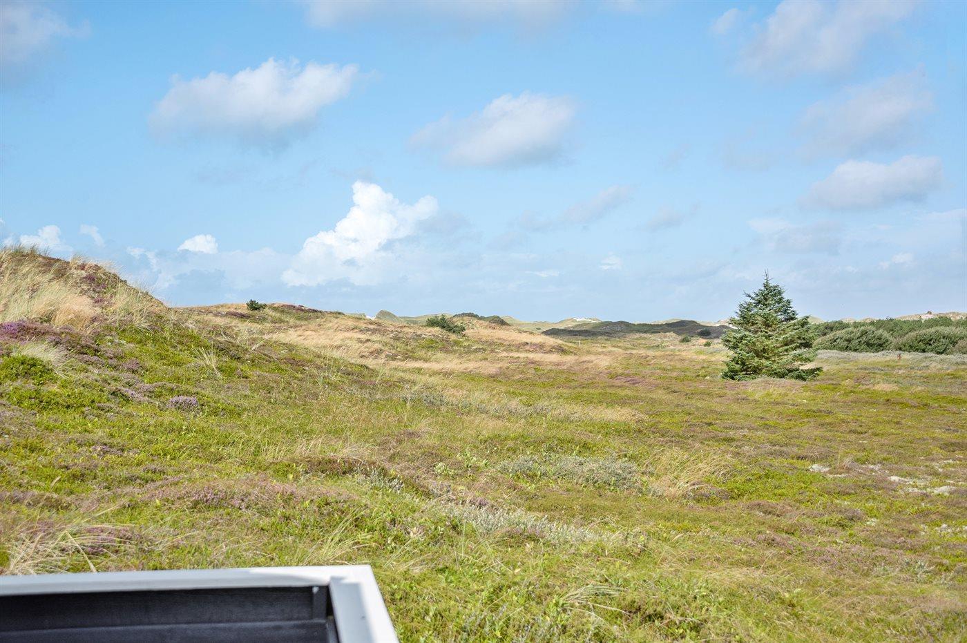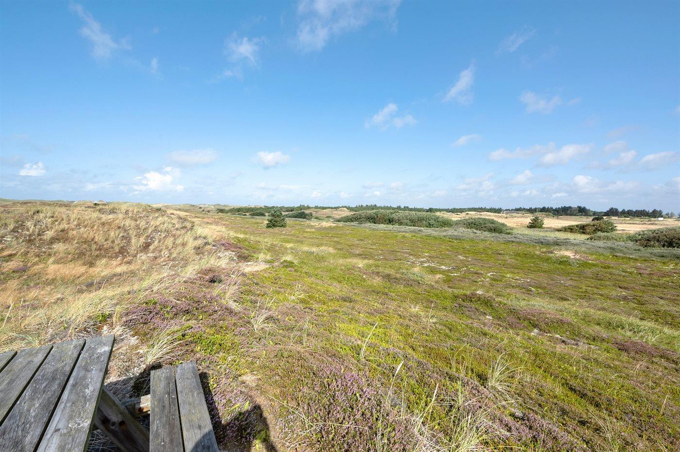 Hyggeligt sommerhus i Hvide Sande med ugenert udsigt over klit- og hedelandskab.