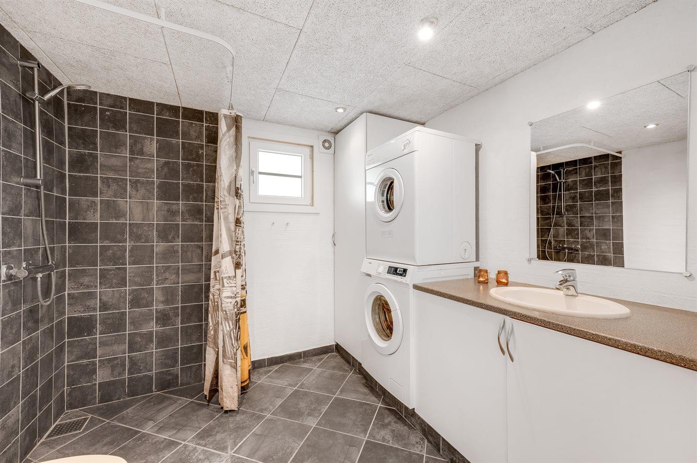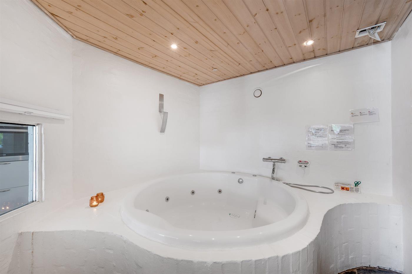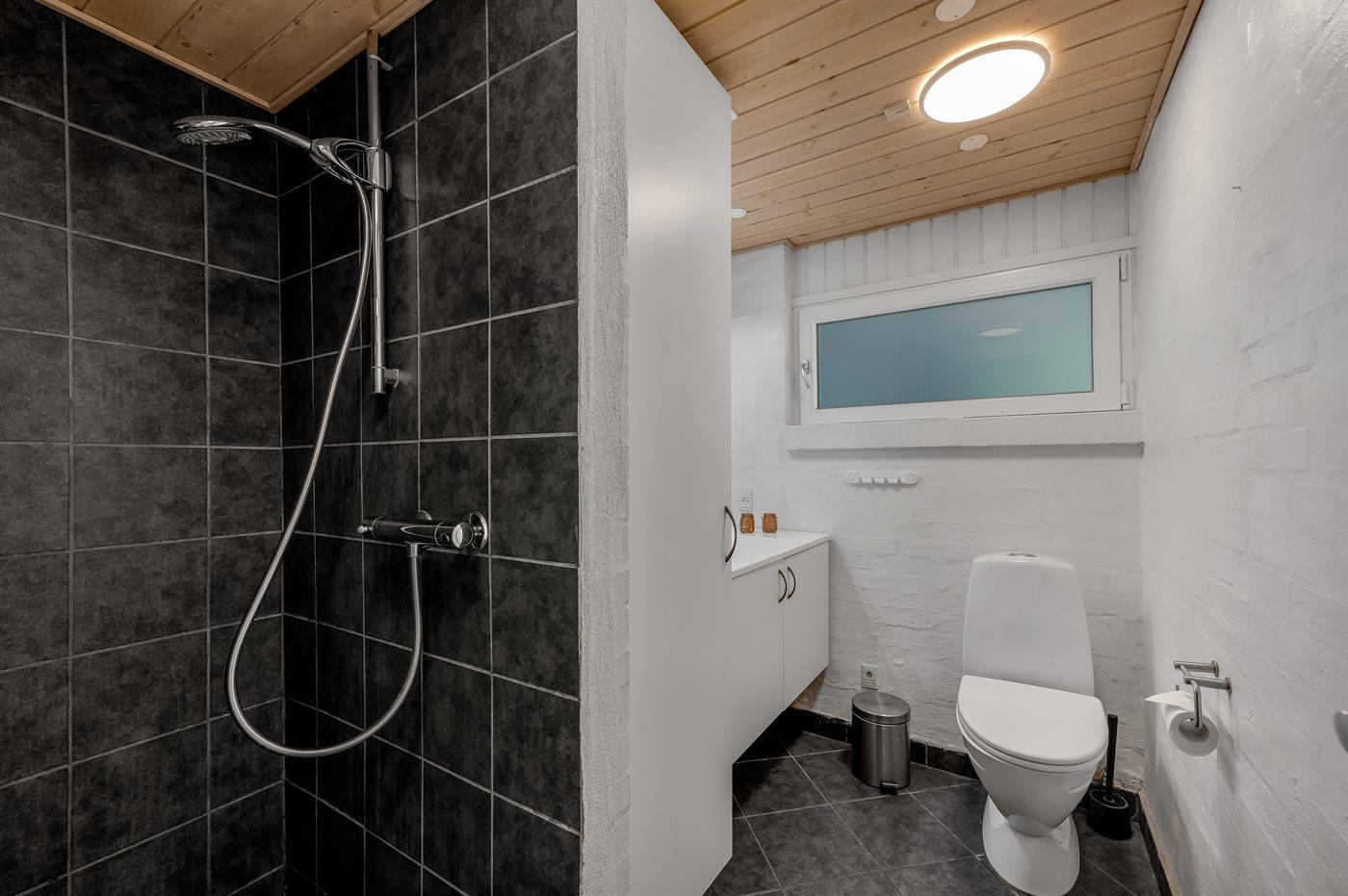 Der er 2 badeværelser med bruseniche og 2 toiletter. Der er gulvvarme på 1 badeværelse. I saunaen er der mulighed for afslapning.