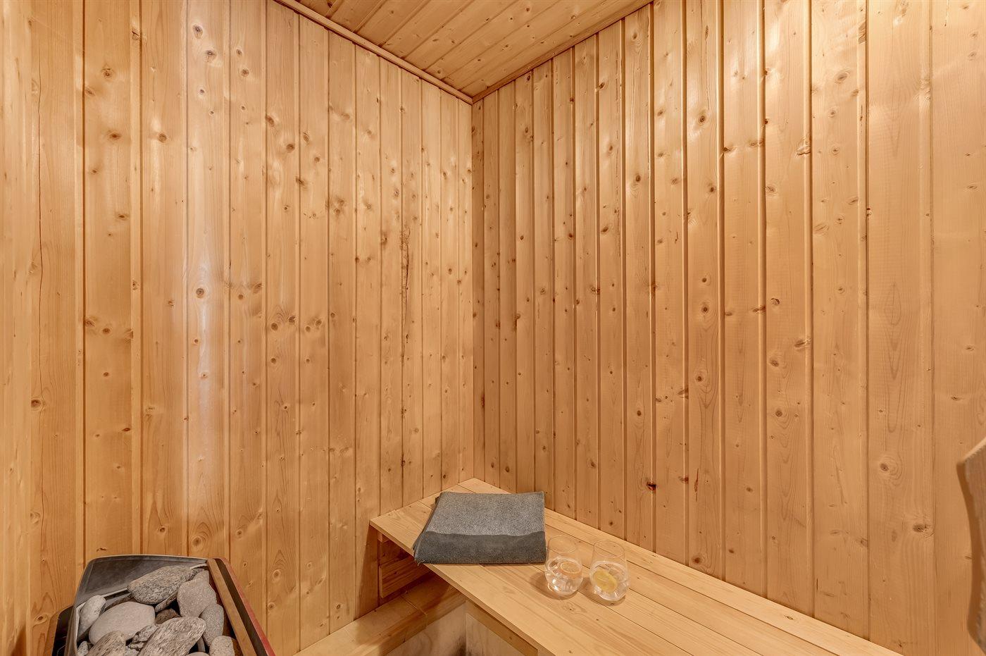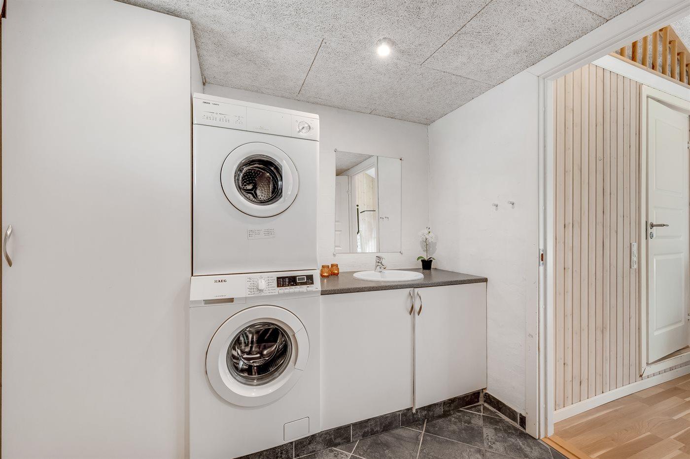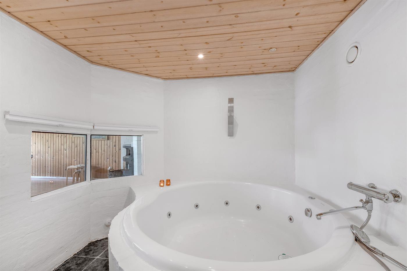 Der er 2 badeværelser med bruseniche og 2 toiletter. Der er gulvvarme på 1 badeværelse. I saunaen er der mulighed for afslapning.