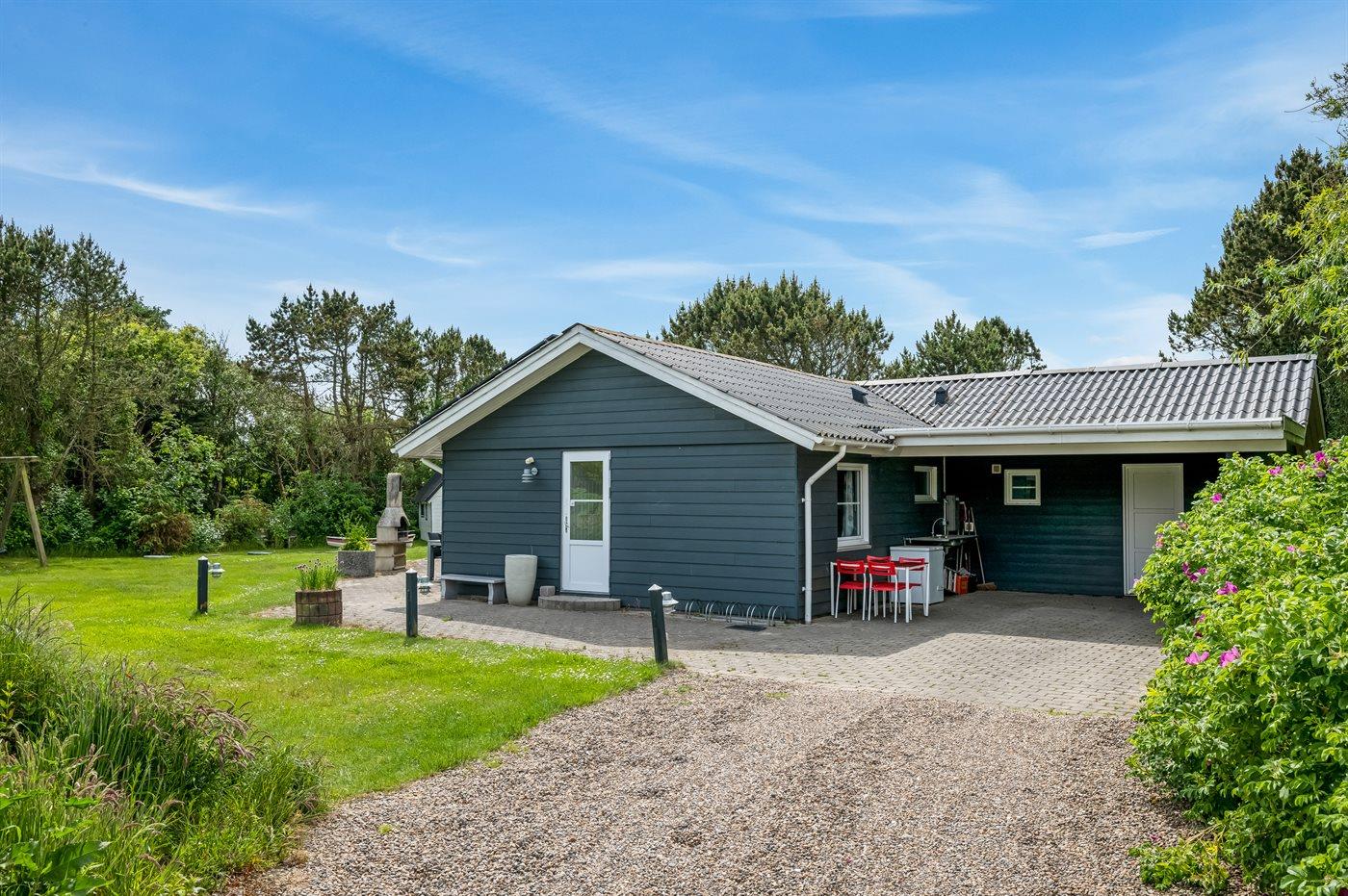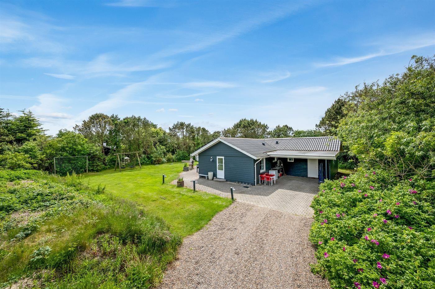Ferieboligen er beliggende på en 1200 m² stor naturgrund. Der er 700 m til havet. Der er 1000 m til fjorden. Nærmeste forretning er beliggende i en afstand af 300 m. Der er en golfbane i en afstand af 20000 m. Til ferieboligen hører 100 m² terrasseareal. Gynge. Sandkasse. Legehus. Fodboldmål. Bålsted. På lune aftener sørger en udendørs pejs for hyggelig stemning. Der er ikke grill til rådighed. Der er mulighed for at tilberede maden udendørs i udekøkkenet. Der er carport til rådighed. Parkering ved ferieboligen.