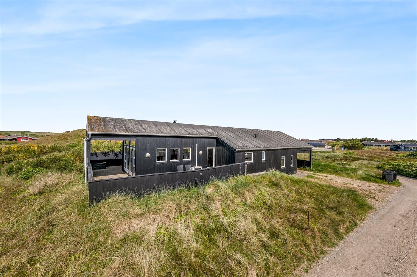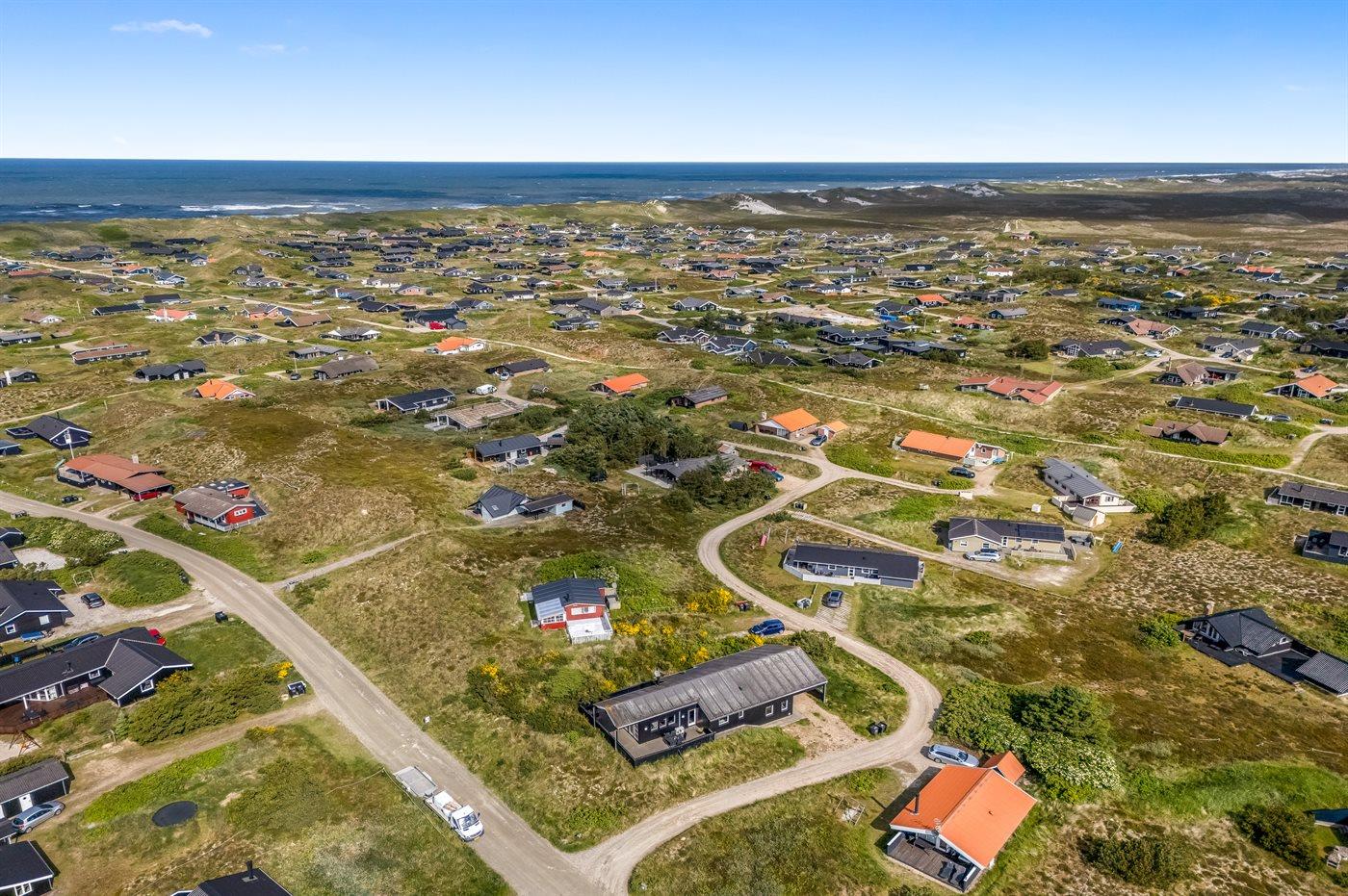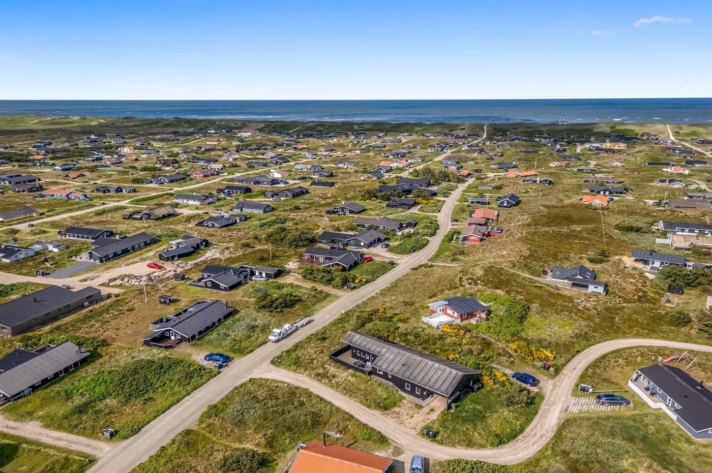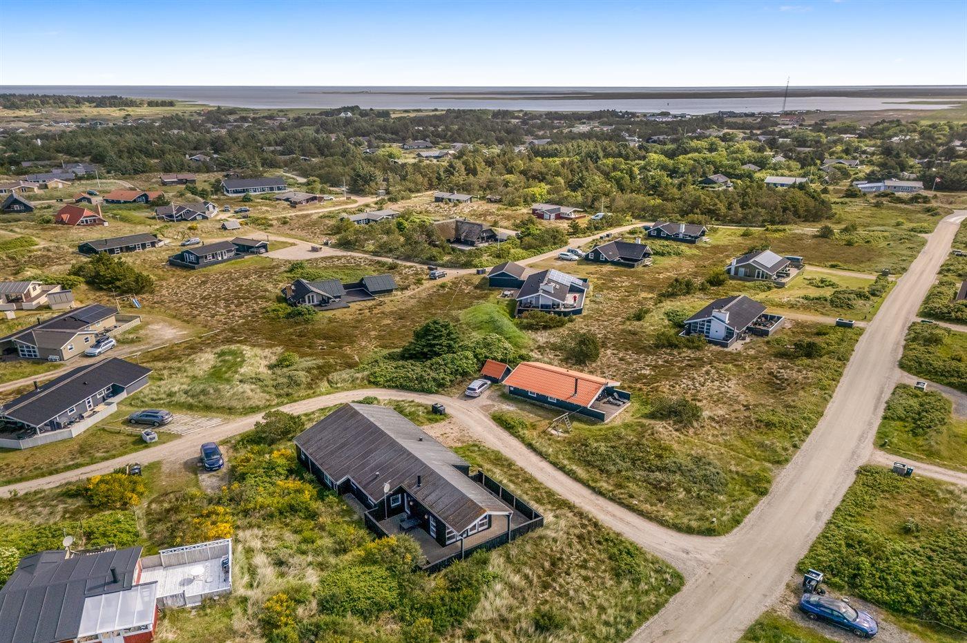 Dette dejlige og smagfuldt indrettede sommerhus ligger på en kuperet grund midt imellem Vesterhavet og Ringkøbing Fjord - i et naturskønt område med gode muligheder for cykel- og vandreture. På den store lukkede terrasse, hvor både små børn og dyr kan færdes sikkert, er der mulighed for at nyde solen fra morgen til aften.
