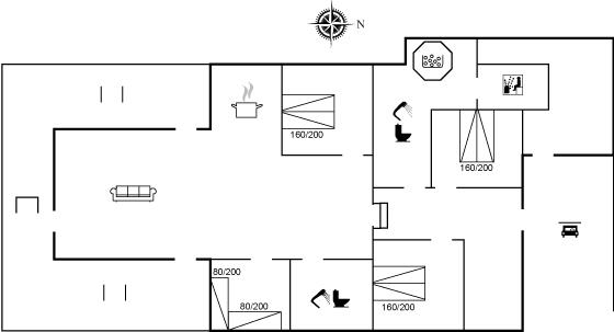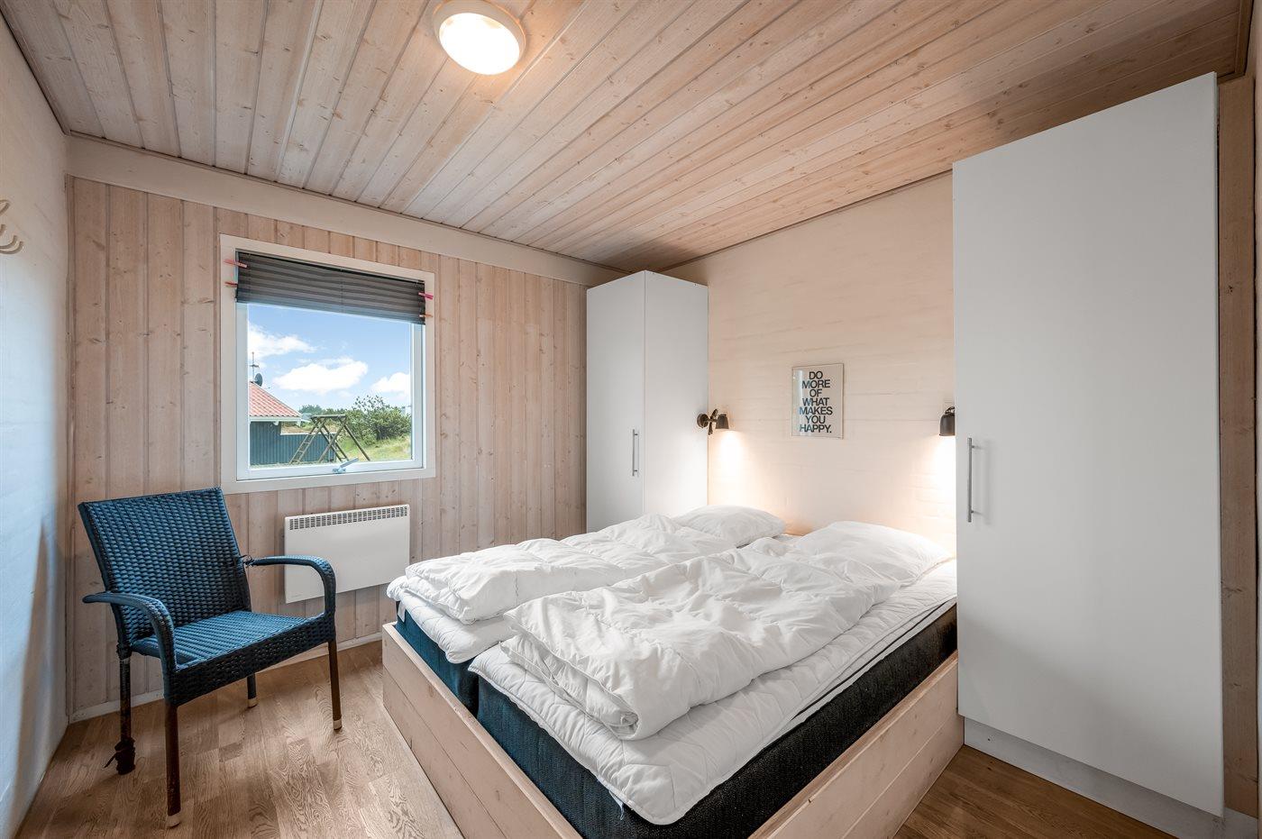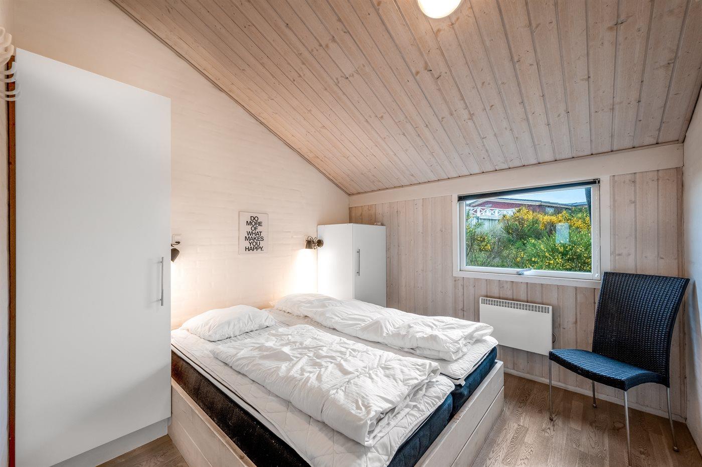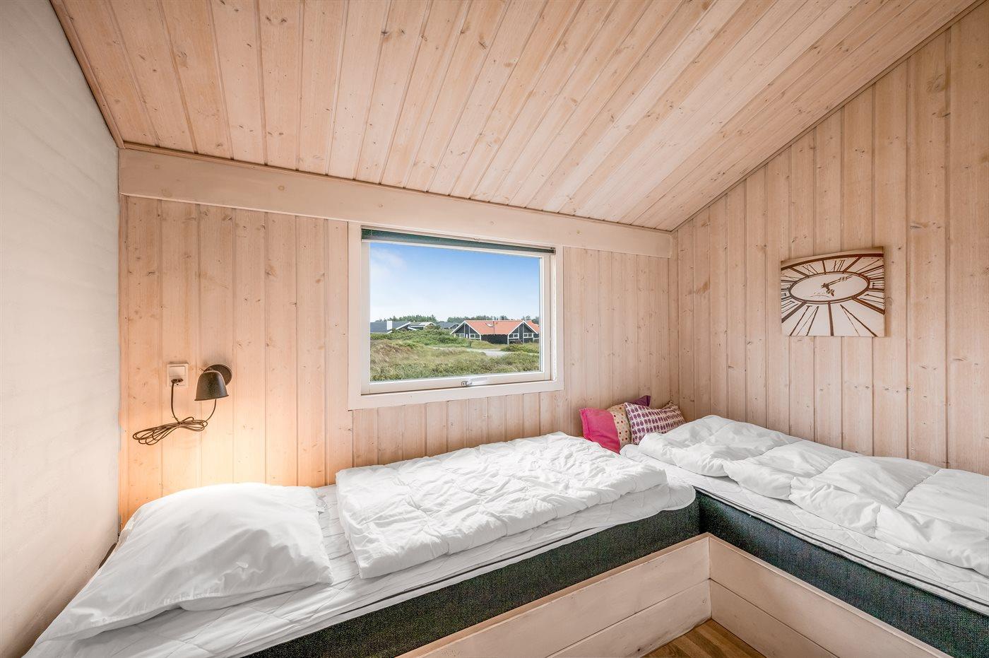 Der er i alt 4 soveværelser. Sovepladserne fordeler sig på: 6 sovepladser i dobbeltsenge. 2 sovepladser i enkeltsenge.