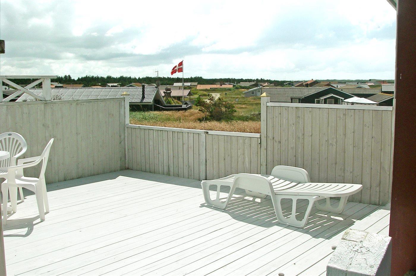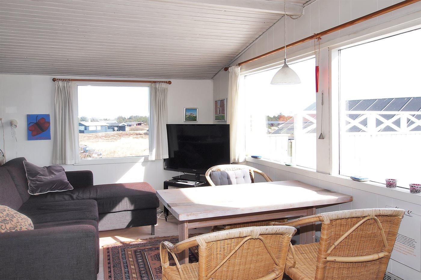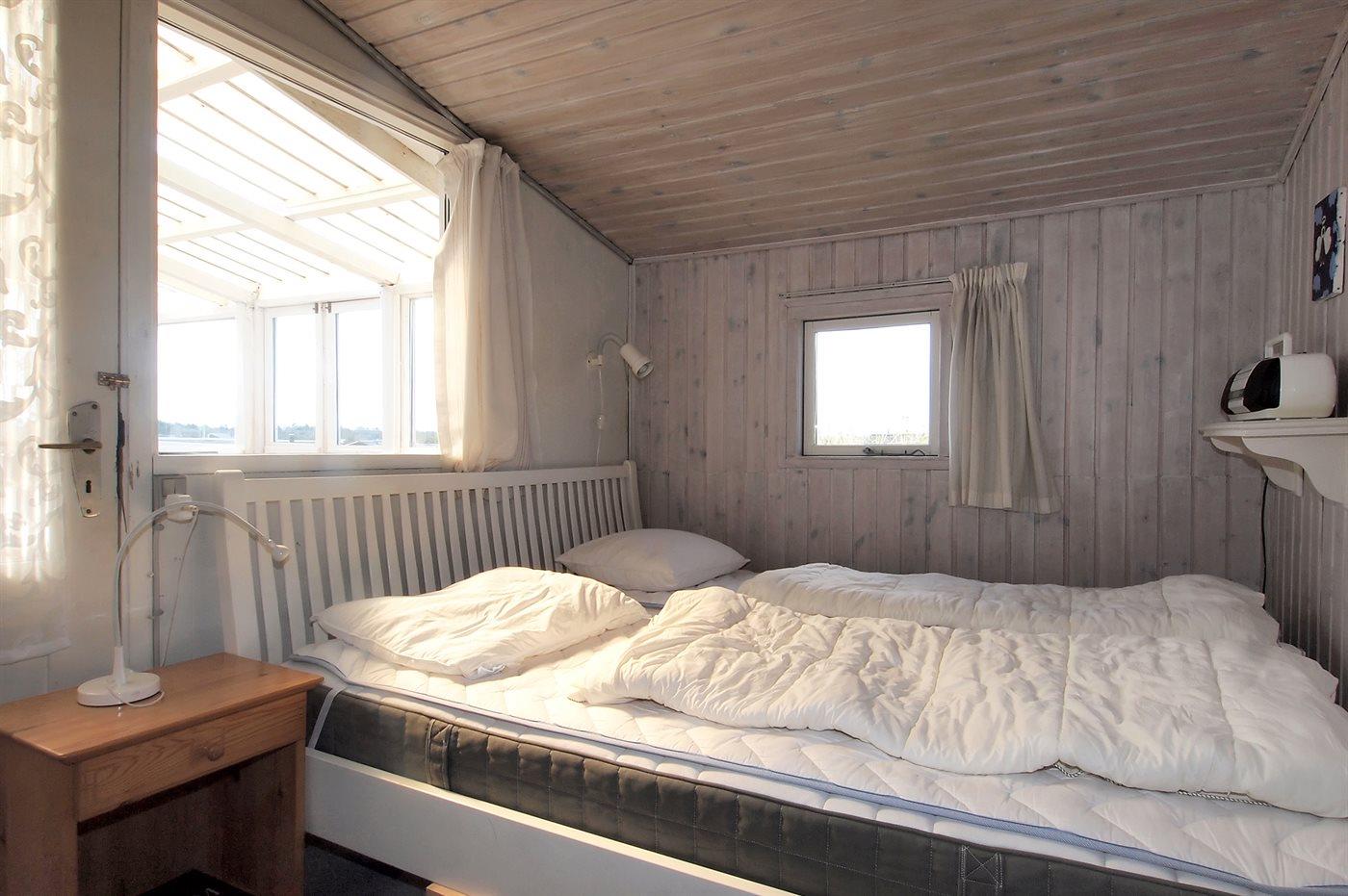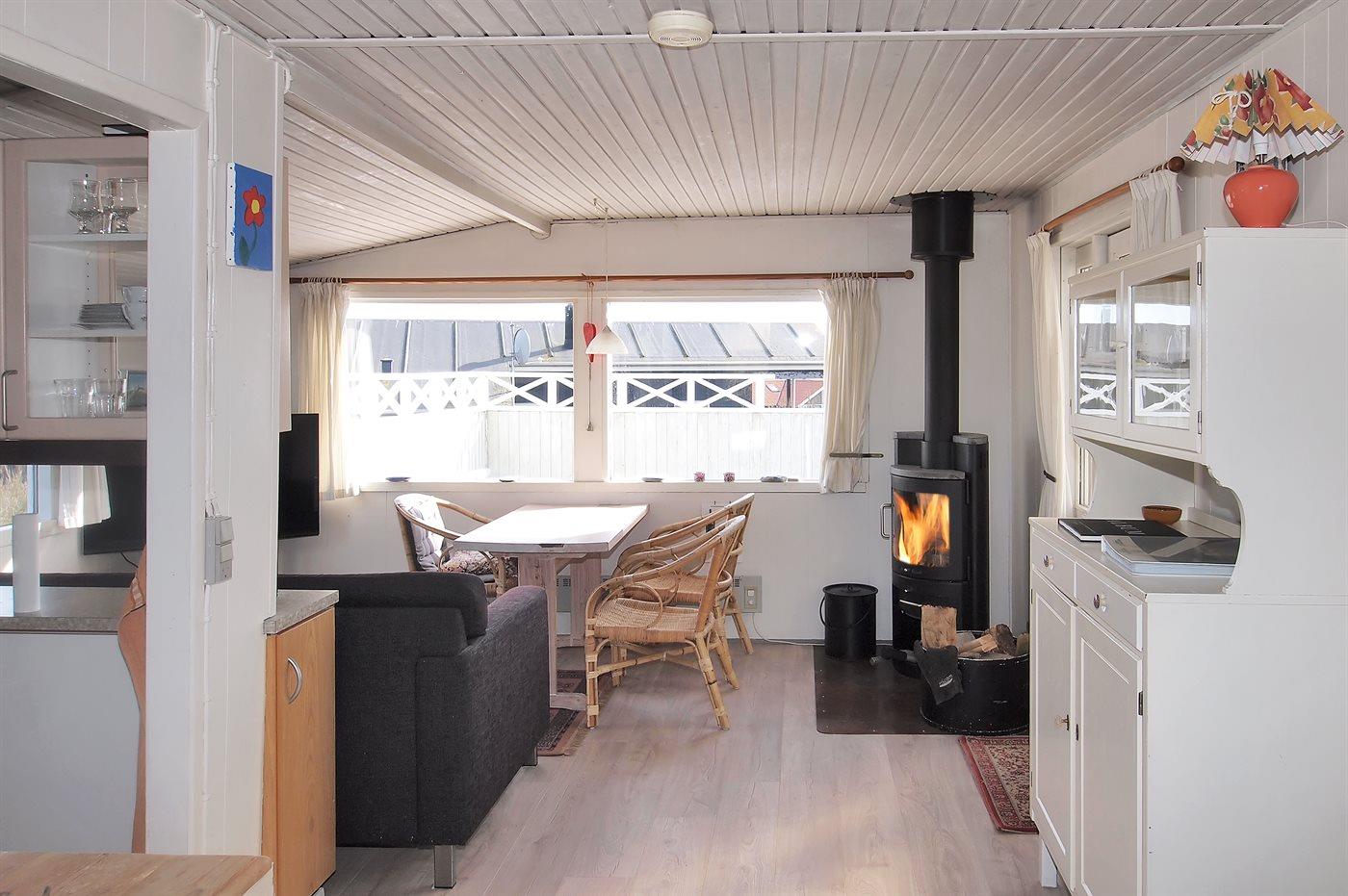 sommerhus i træ fra 1948, beliggende på dejlig, let kuperet klitgrund. Til huset hører 2 åbne terrasser samt udestue. Lyse trælofter og trævægge. Gulvtæpper overalt, dog vinyl i køkkenet. Lille badeværelse med bruseniche. Køkken med bl.a. fryser og mikrobølgeovn. Opholdsstue med brændeovn, DVD-afspiller, CD-afspiller og TV med parabol (digital). Desuden gratis internetforbindelse til rådighed (100/100 Mbit - computer skal medbringes). Husets sovepladser fordeler sig på 1 værelse med dobbeltseng og 1 værelse med køjeseng.