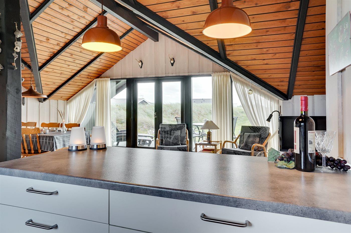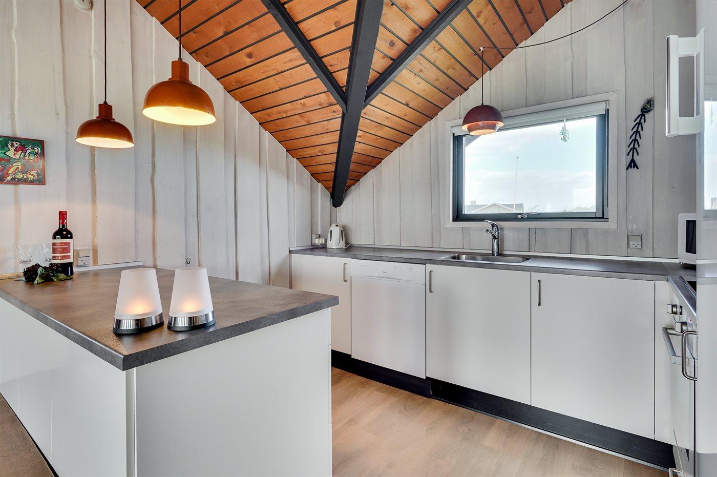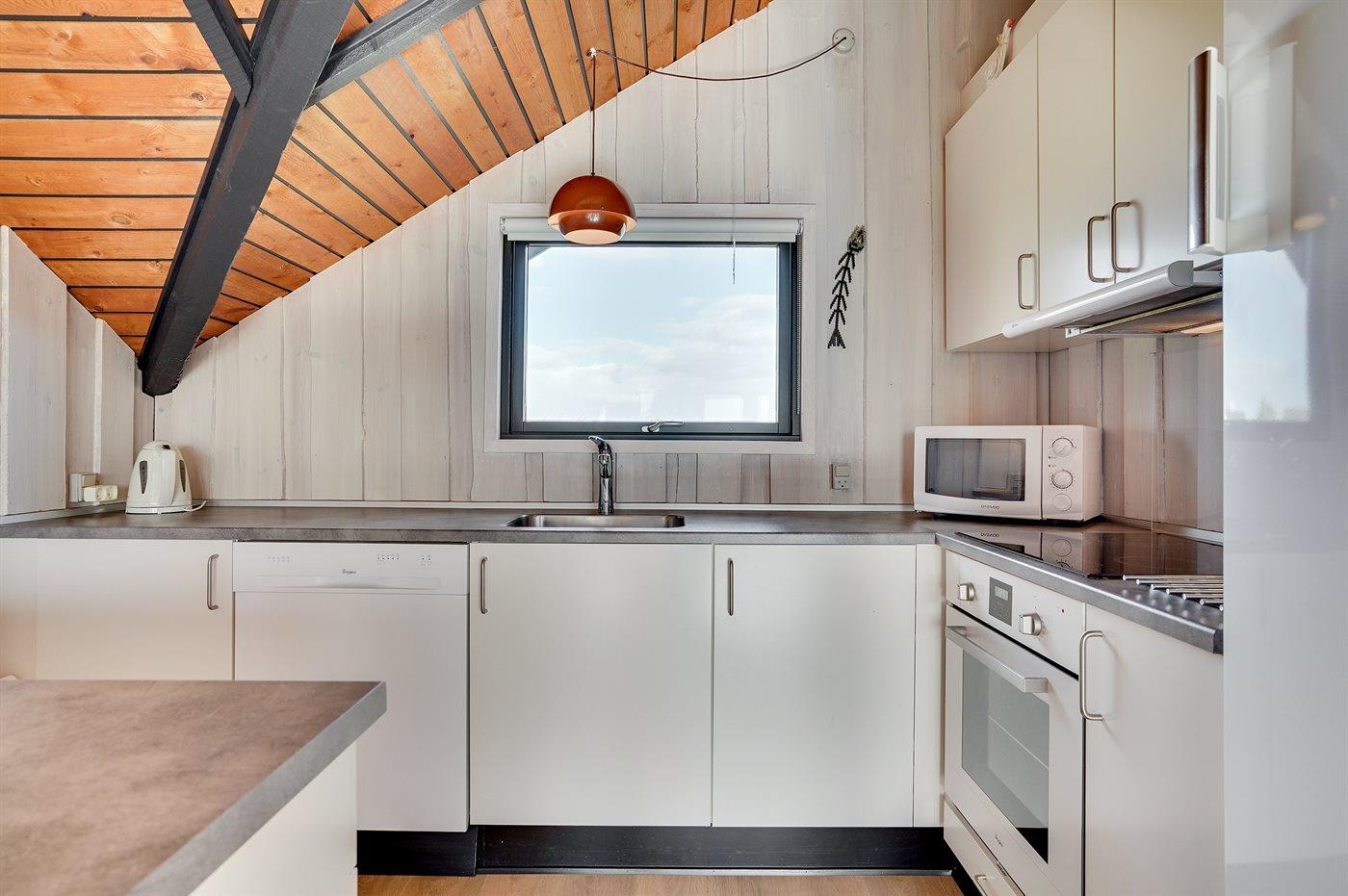 Køkkenet er udstyret med 1 køleskab. Der er 4 keramiske kogeplader, varmluftovn, mikrobølgeovn samt opvaskemaskine.