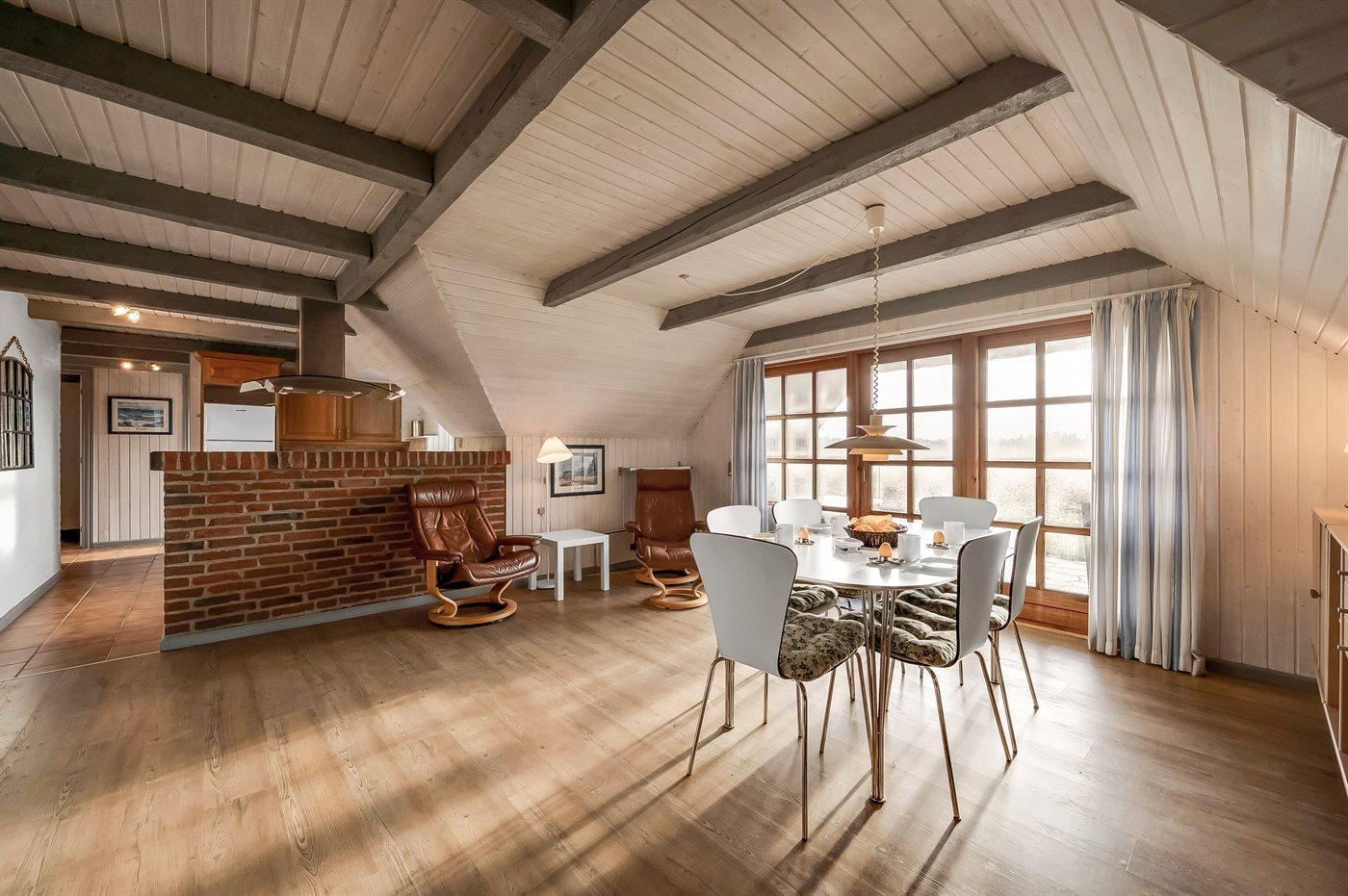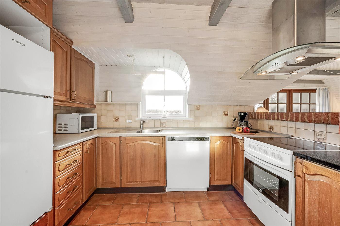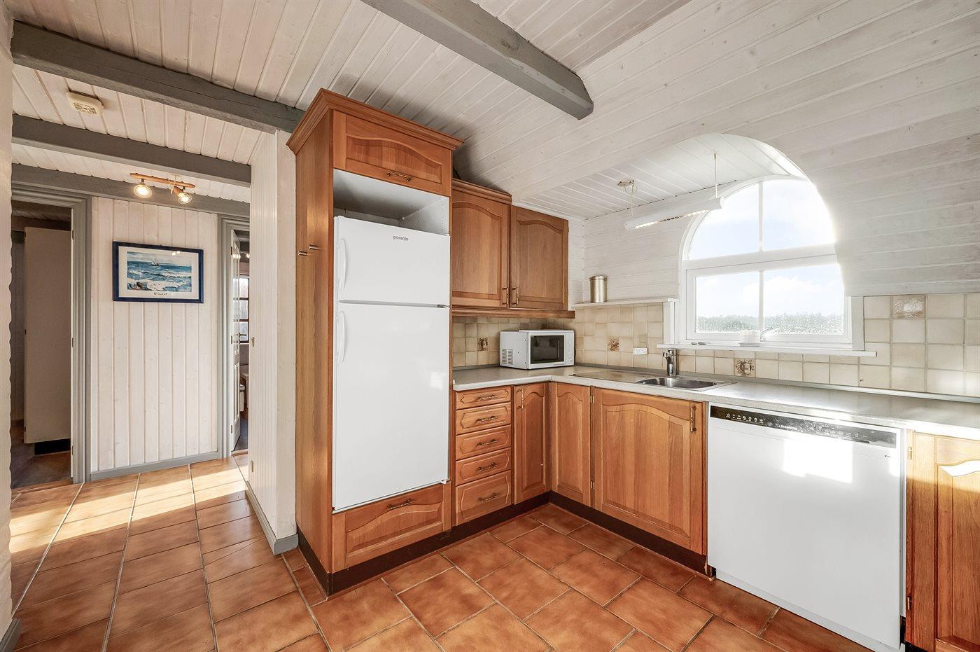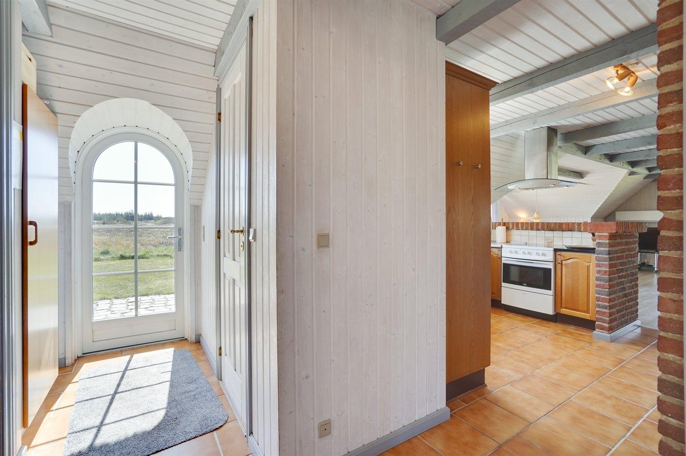 Hyggeligt og rummeligt sommerhus i sten med stråtag beliggende på dejlig naturgrund bevokset med lyng og lille vandløb. Huset er beliggende i fredelige omgivelser og har såvel åbent som overdækket terrasseareal med havemøbler. Fra den delvist overdækkede terrasse er der en dejlig og ugenert udsigt over klitlandskabet. Flisegulve i køkken og badeværelse, gulvtæpper i stuen og på værelserne. Badeværelse med bruseniche, vaskemaskine og gulvvarme. Gæstetoilet. Velfungerende køkken med bl.a. mikrobølgeovn og opvaskemaskine. Der er indlagt gulvvarme i køkkenet. Hyggelig opholdsstue med brændeovn og TV med parabol (digital). Fra opholdsstuen er der desuden adgang til den delvist overdækkede terrasse. Der er gynge til børnene. 2 soveværelser med dobbeltseng samt 1 værelse med 2 enkeltsenge. Af yderligere udstyr kan gratis, trådløs internetforbindelse (computer skal medbringes) og varmepumpe nævnes. Et godt og hyggeligt sommerhus i rolige omgivelser.