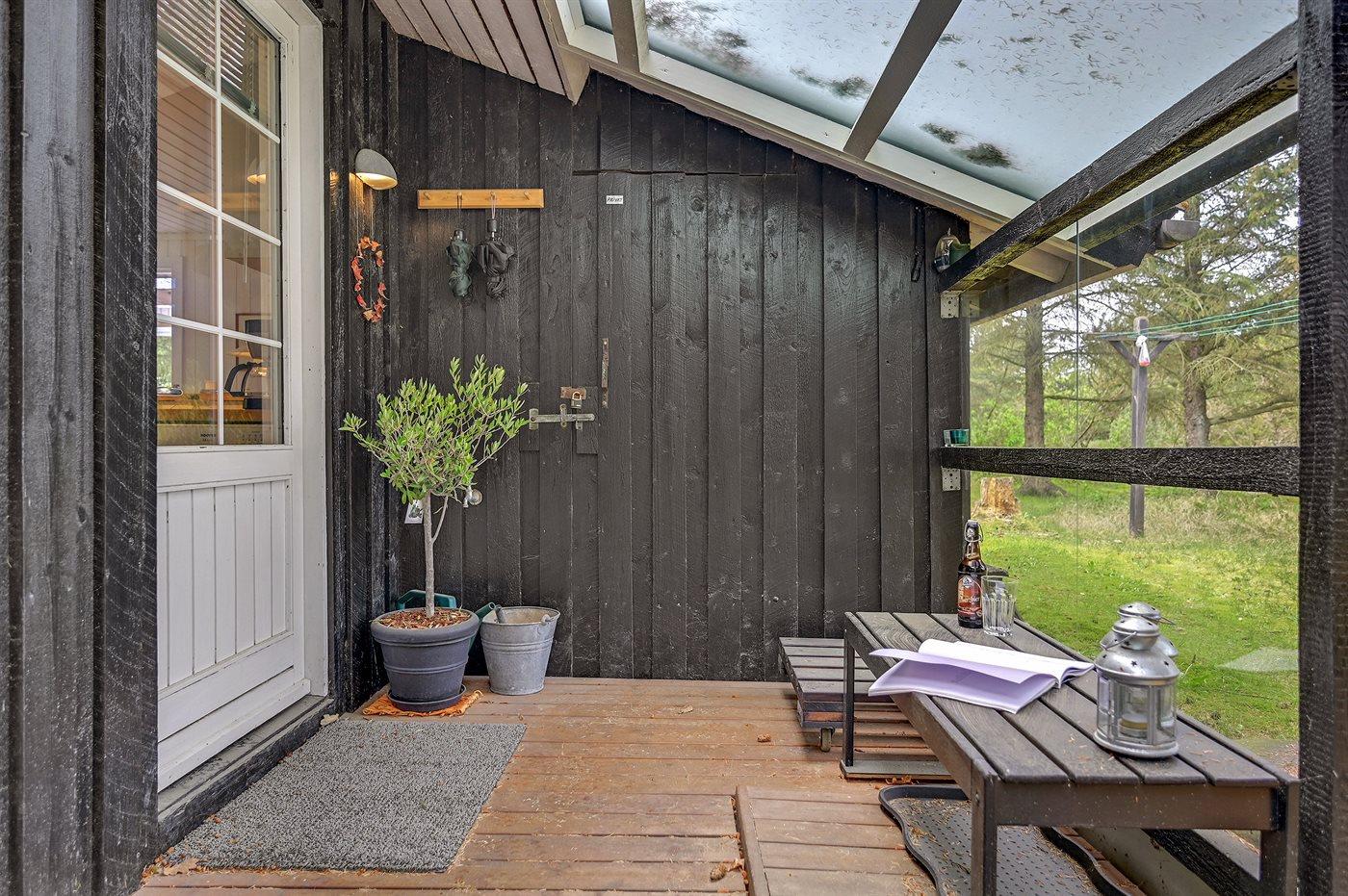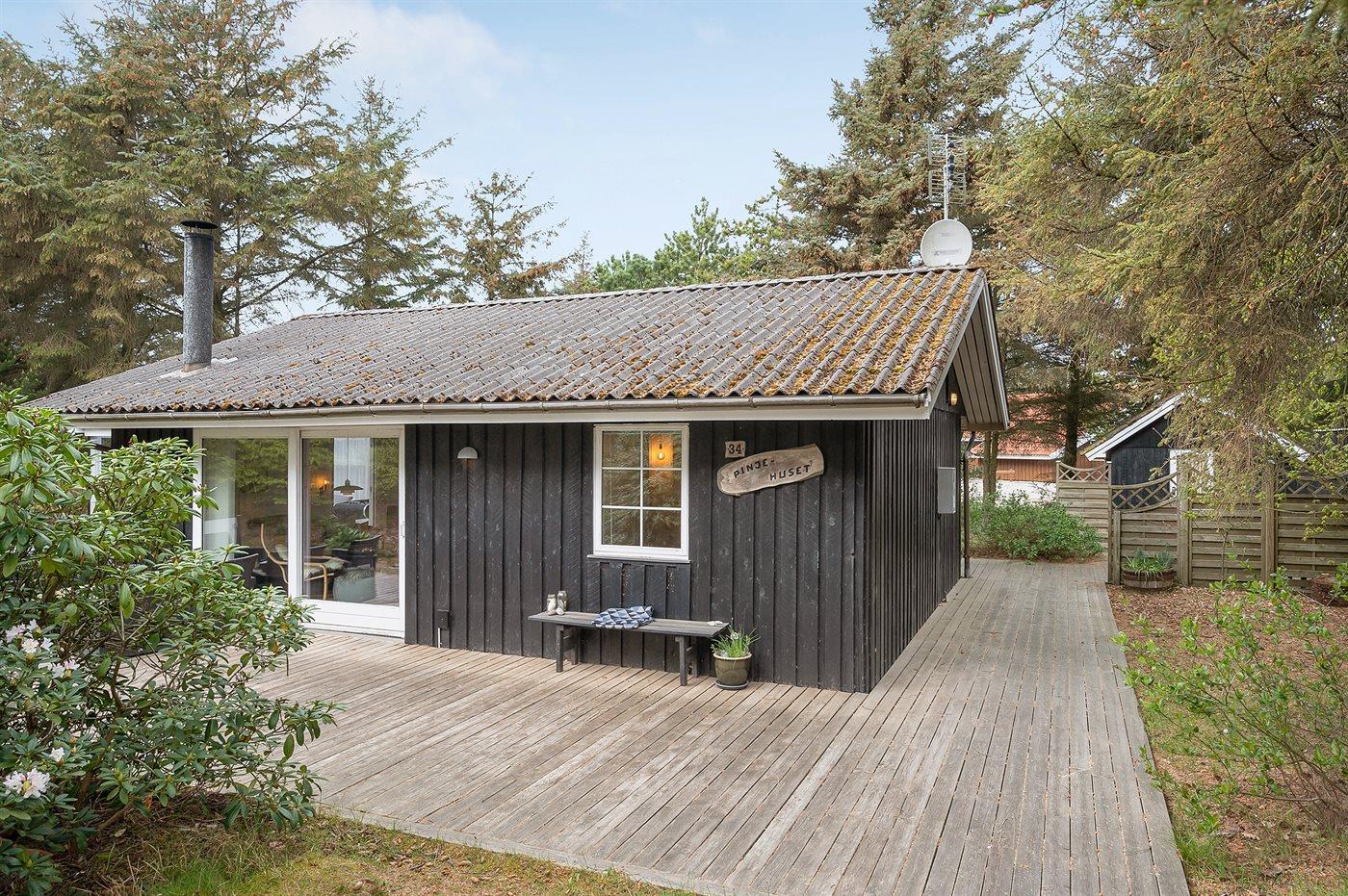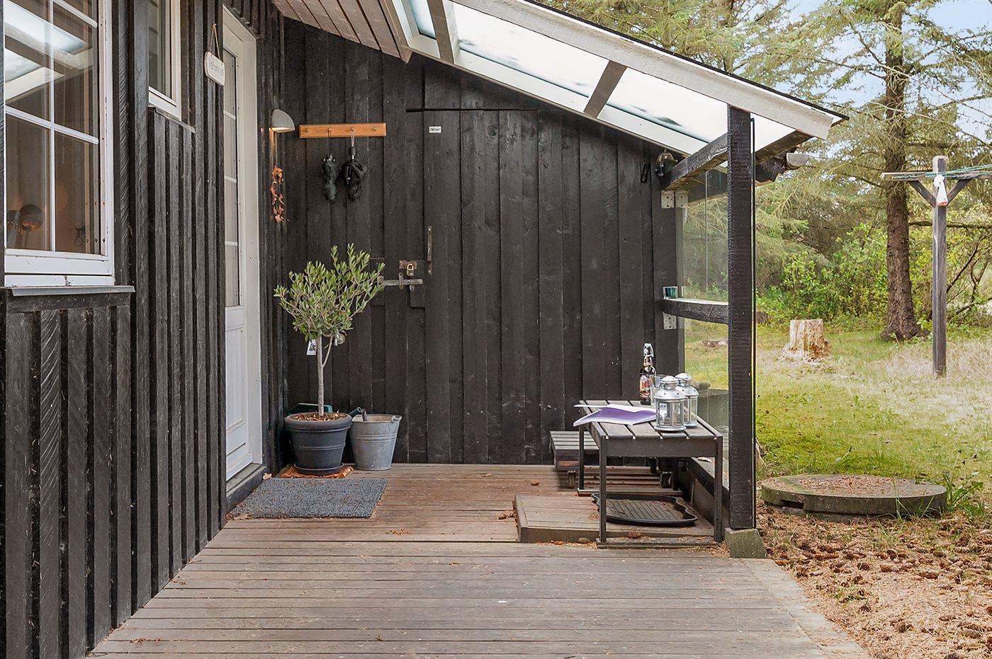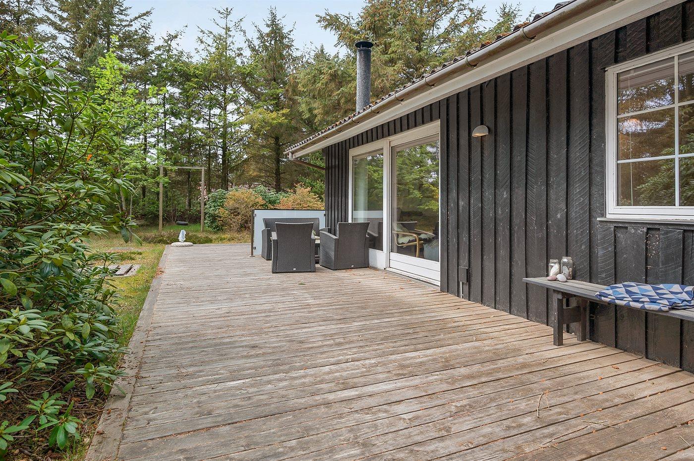 Et dejligt 4+2 personers træhus fra 1976 med udestue og anneks, beliggende på en skøn, uforstyrret naturgrund omkranset af fyrretræer, som skærmer for både indkig og vind. Huset ligger på Bjerregaards sydligste stikvej lige ved skoven og det fredede hedeareal, og med kun 700 meter til det fantastiske Vesterhav, Ringkøbing Fjord og områdets velassorterede købmand. Den unikke beliggenhed giver sammen med den sorte træfacade, de hvide sprossevinduer samt det lyse plankegulv den helt rigtige sommerhusstemning. I området er der optimale muligheder for en badetur, vandreture, lystfiskeri, surfing, mountainbiking, golf, shopping, kulinariske oplevelser eller bare at nyde solen…