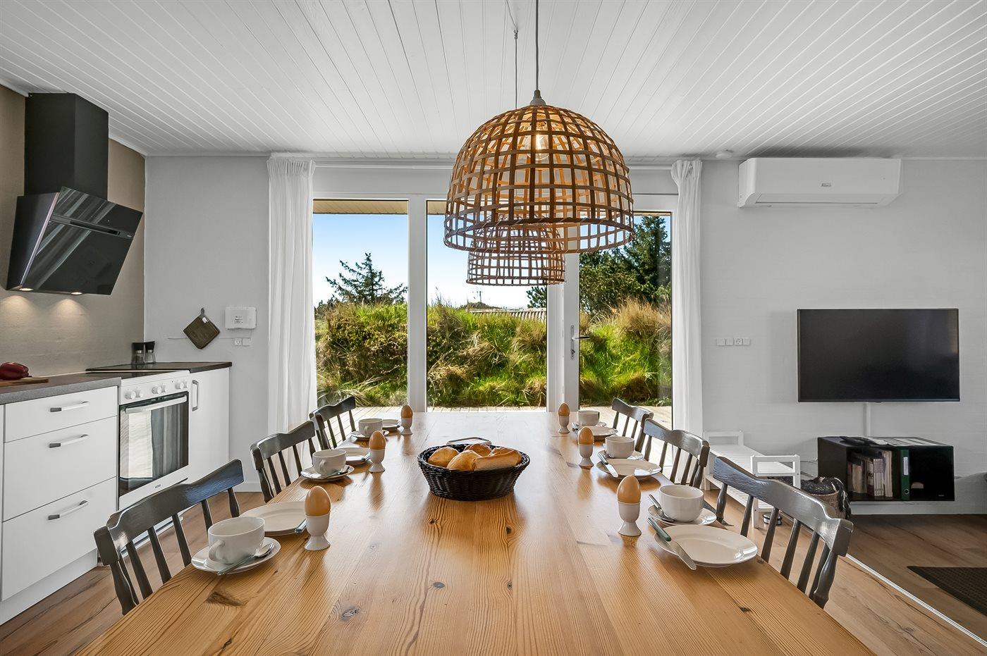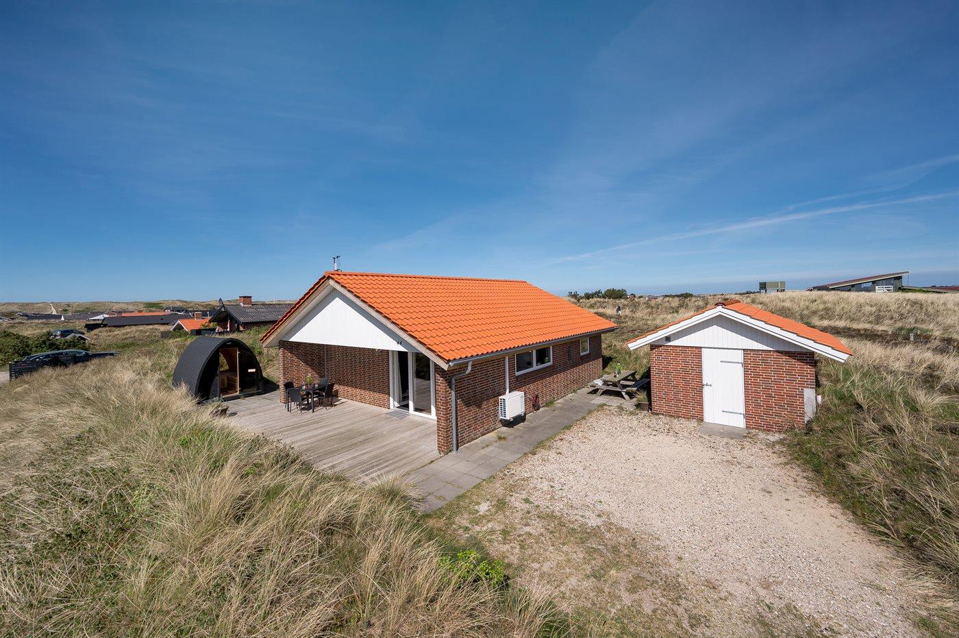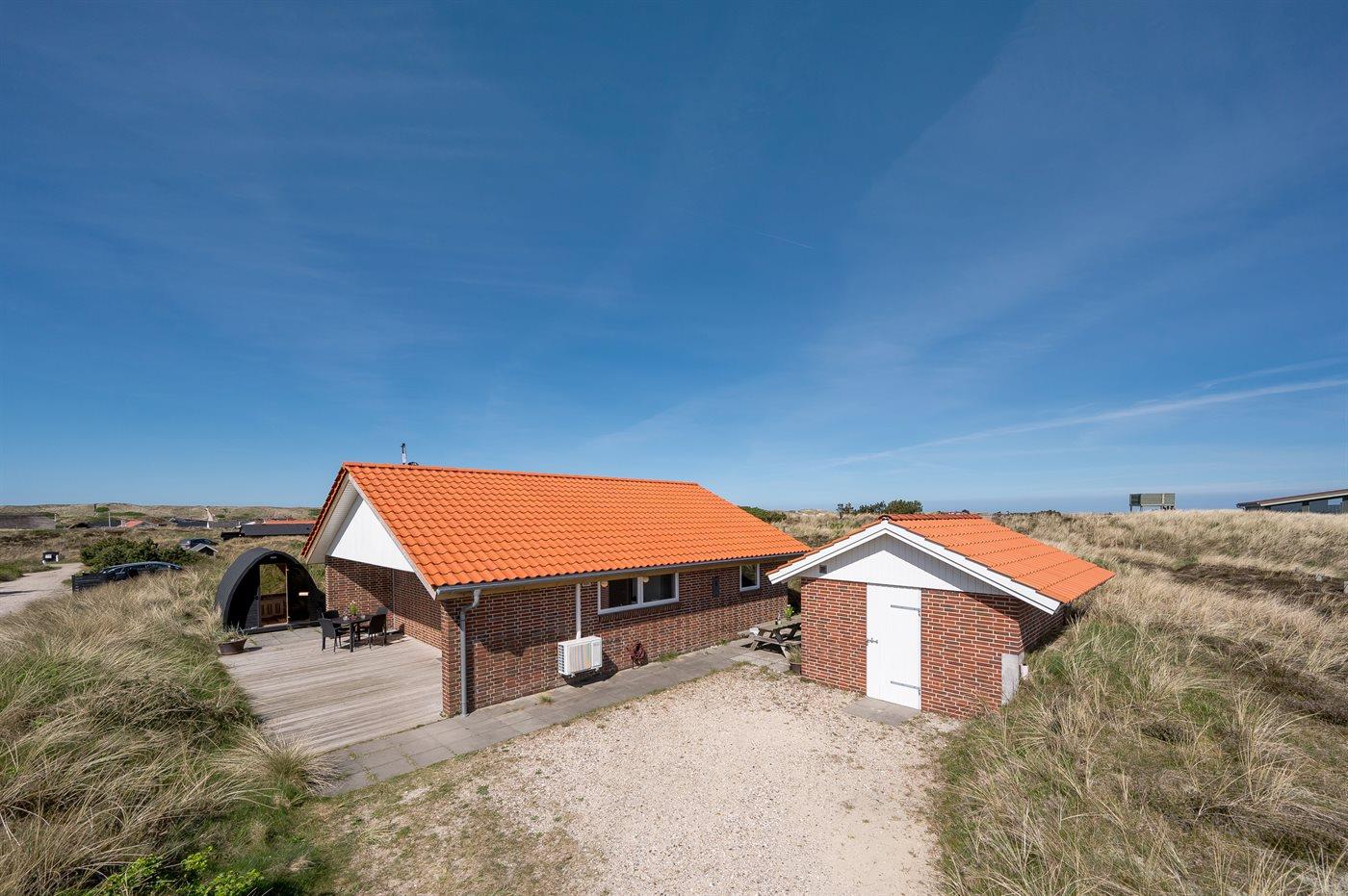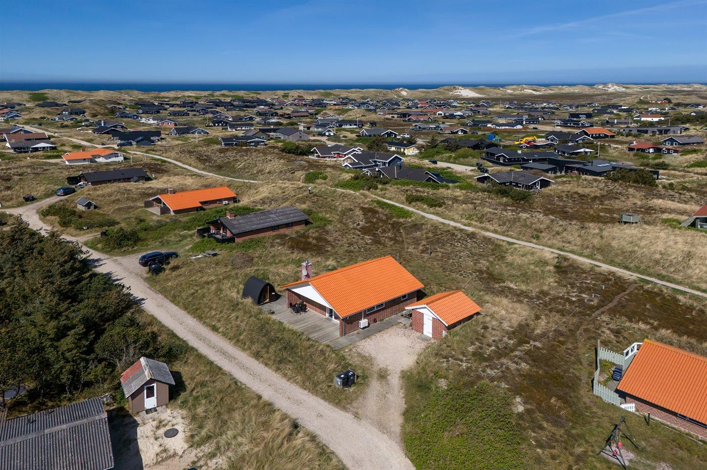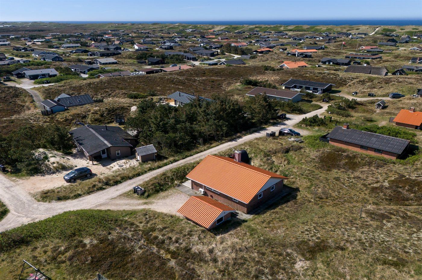 Ferieboligen er beliggende på en 1380 m² stor klitgrund. Der er 700 m til havet. Der er 1900 m til fjorden. Nærmeste forretning er beliggende i en afstand af 850 m. Desuden er der 12 m² overdækket terrasse. Der er redskabsrum. Udendørs sauna. Parkering ved ferieboligen.