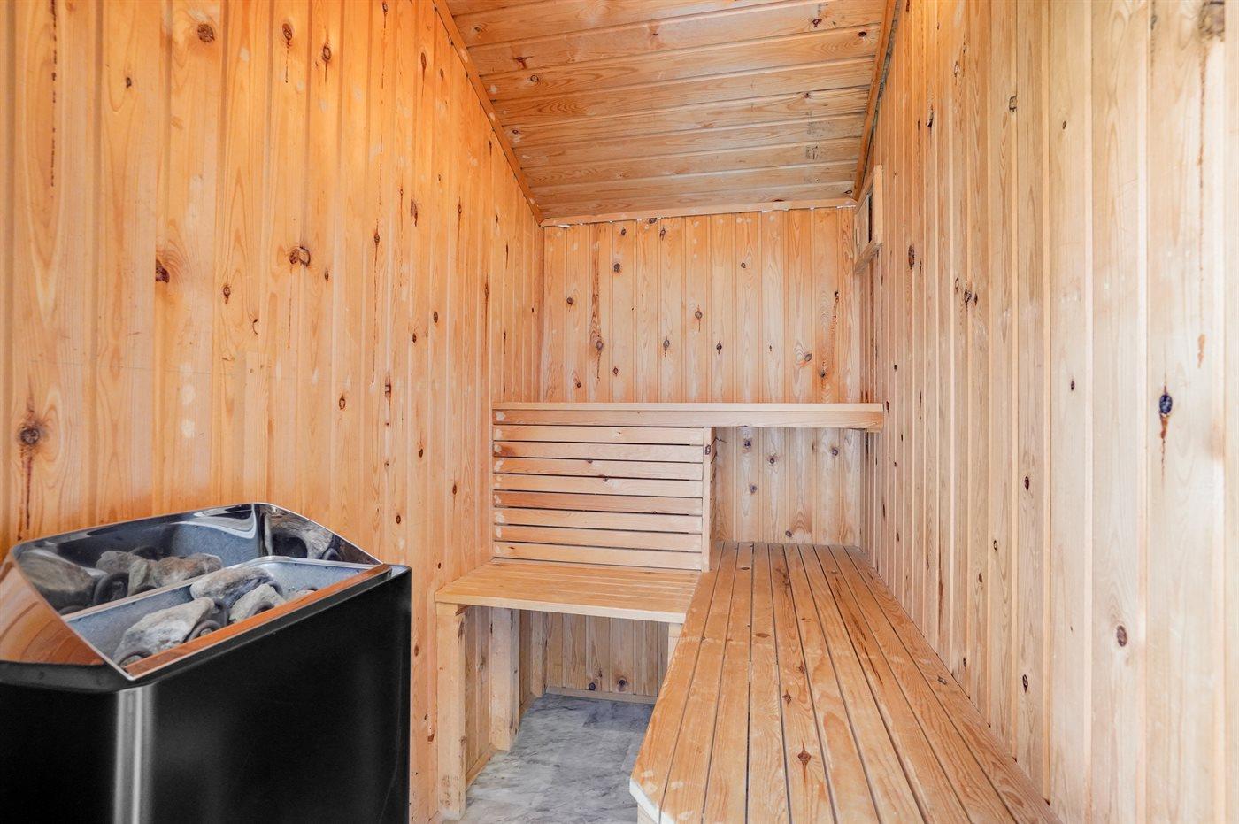 Der er 1 badeværelse med bruseniche og 1 toilet.. Der er gulvvarme på 1 badeværelse. I saunaen er der mulighed for afslapning.