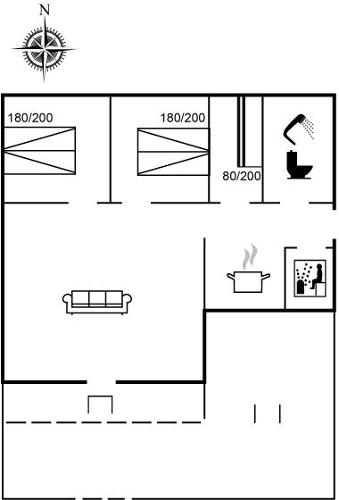 Der er i alt 3 soveværelser. Sovepladserne fordeler sig på: 4 sovepladser i dobbeltsenge. 2 sovepladser i køjeseng.