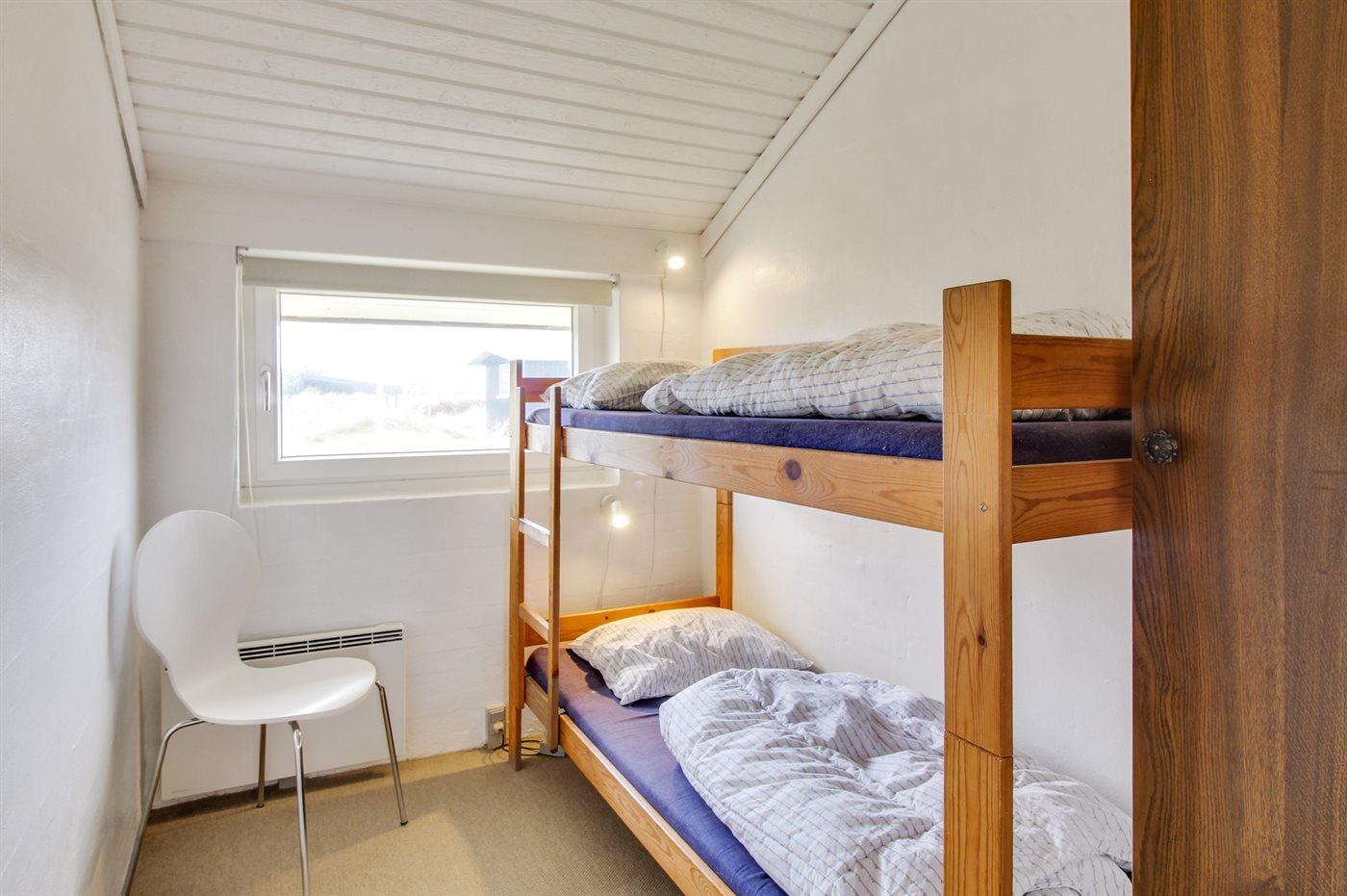 Der er i alt 3 soveværelser. Sovepladserne fordeler sig på: 2 sovepladser i dobbeltseng. 2 sovepladser i køjeseng. 2 sovepladser i sovesofa (dobbelt).