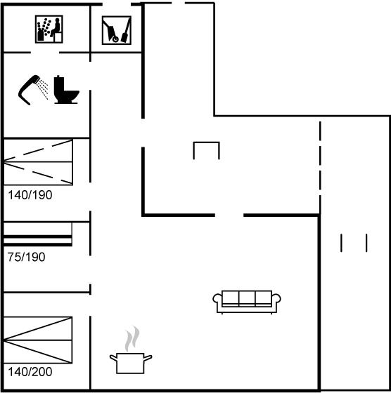 Der er 1 badeværelse med bruseniche og 1 toilet. I saunaen er der mulighed for afslapning.