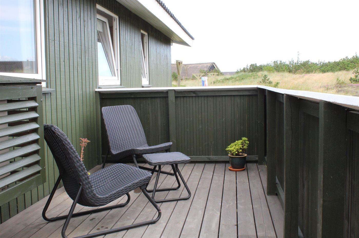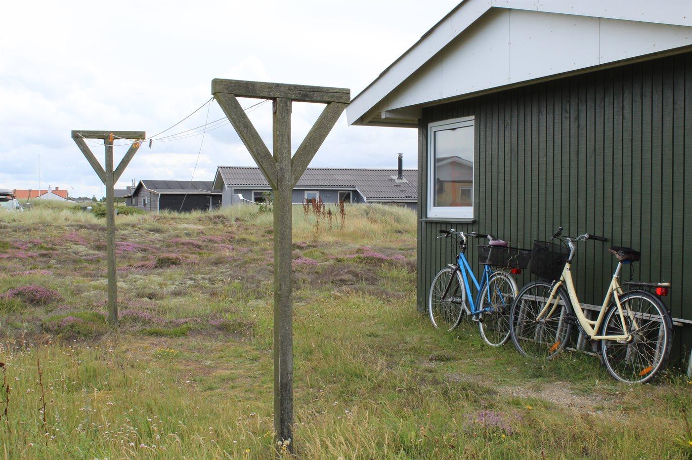 Ferieboligen er beliggende på en 1200 m² stor naturgrund. Der er 450 m til havet. Der er 1300 m til fjorden. Nærmeste forretning er beliggende i en afstand af 900 m. Til ferieboligen hører 10 m² terrasseareal. Desuden er der 8 m² overdækket terrasse. Heraf i alt 18 m² lukket terrasse. Der er redskabsrum. Sandkasse. Parkering ved ferieboligen.