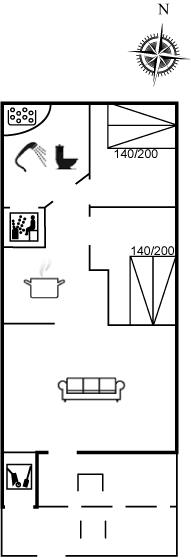 Der er i alt 2 soveværelser. Sovepladserne fordeler sig på: 4 sovepladser i dobbeltsenge. Derudover er der 1 stk. barneseng.