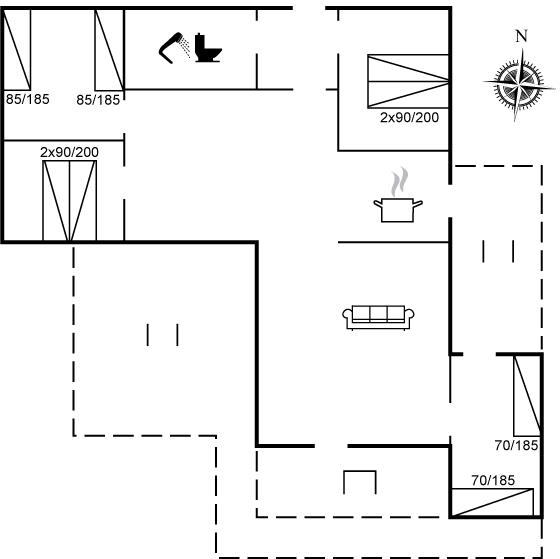 Der er i alt 4 soveværelser. Sovepladserne fordeler sig på: 4 sovepladser i dobbeltsenge. 4 sovepladser i enkeltsenge.