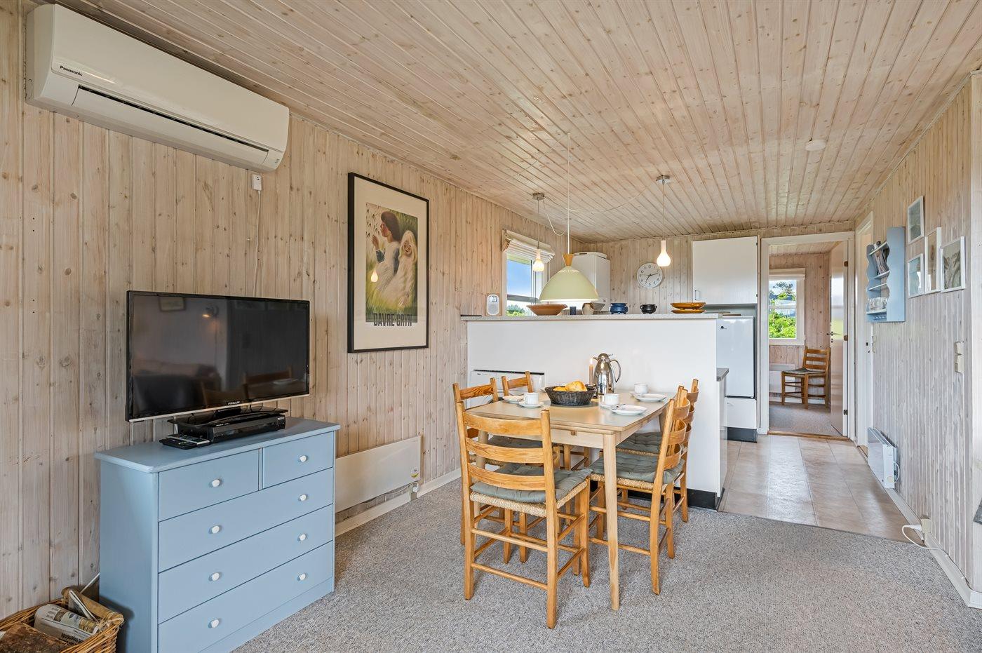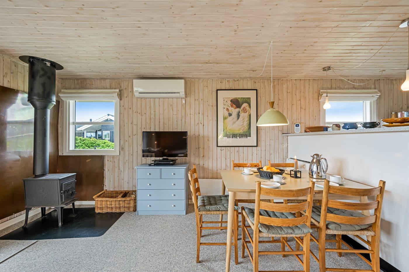 Dette velholdte sommerhus ligger tæt på indkøbsmuligheder, midt imellem Vesterhavet og Ringkøbing Fjord, i et naturskønt område med gode muligheder for cykel- og vandreture.