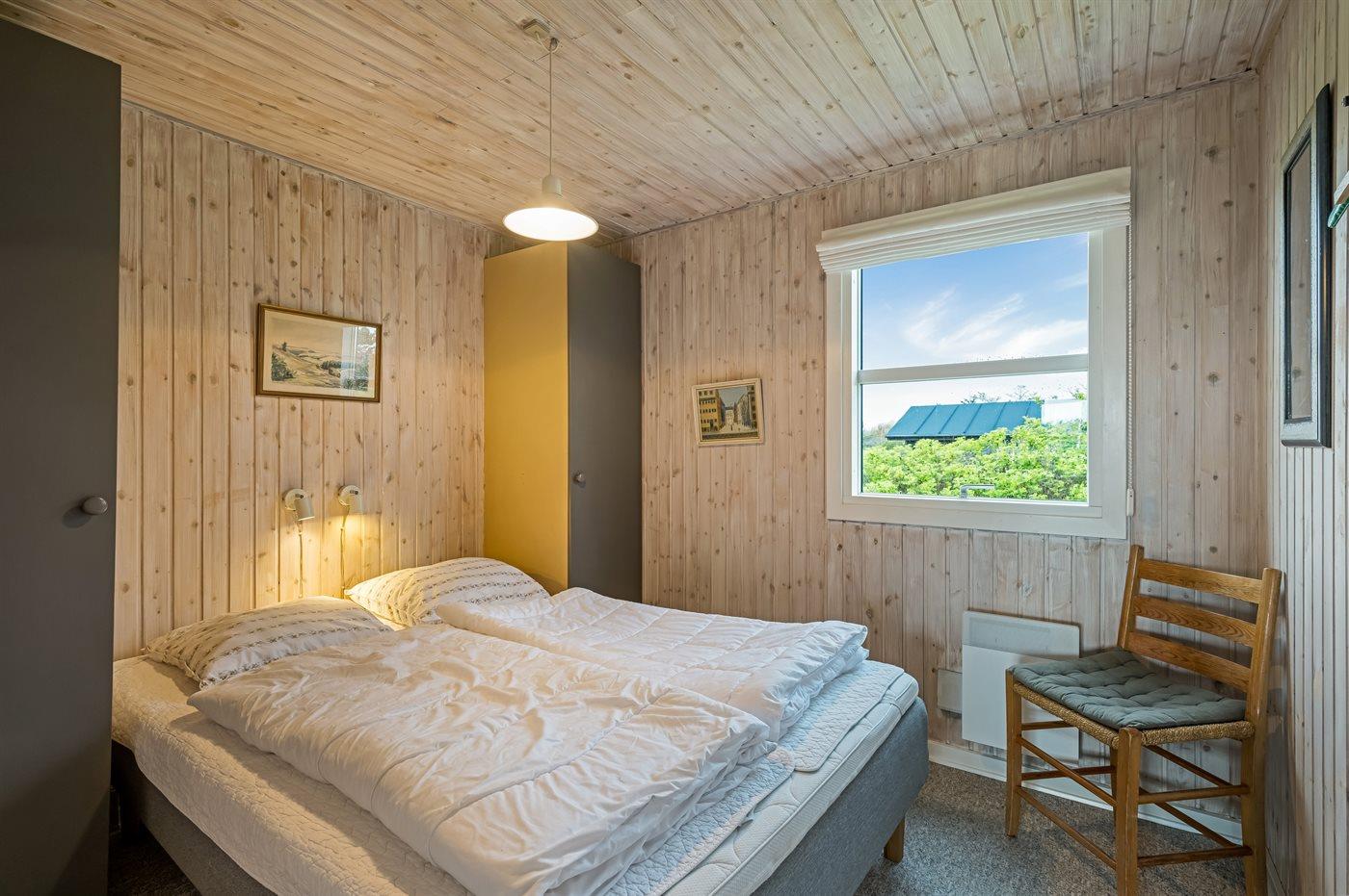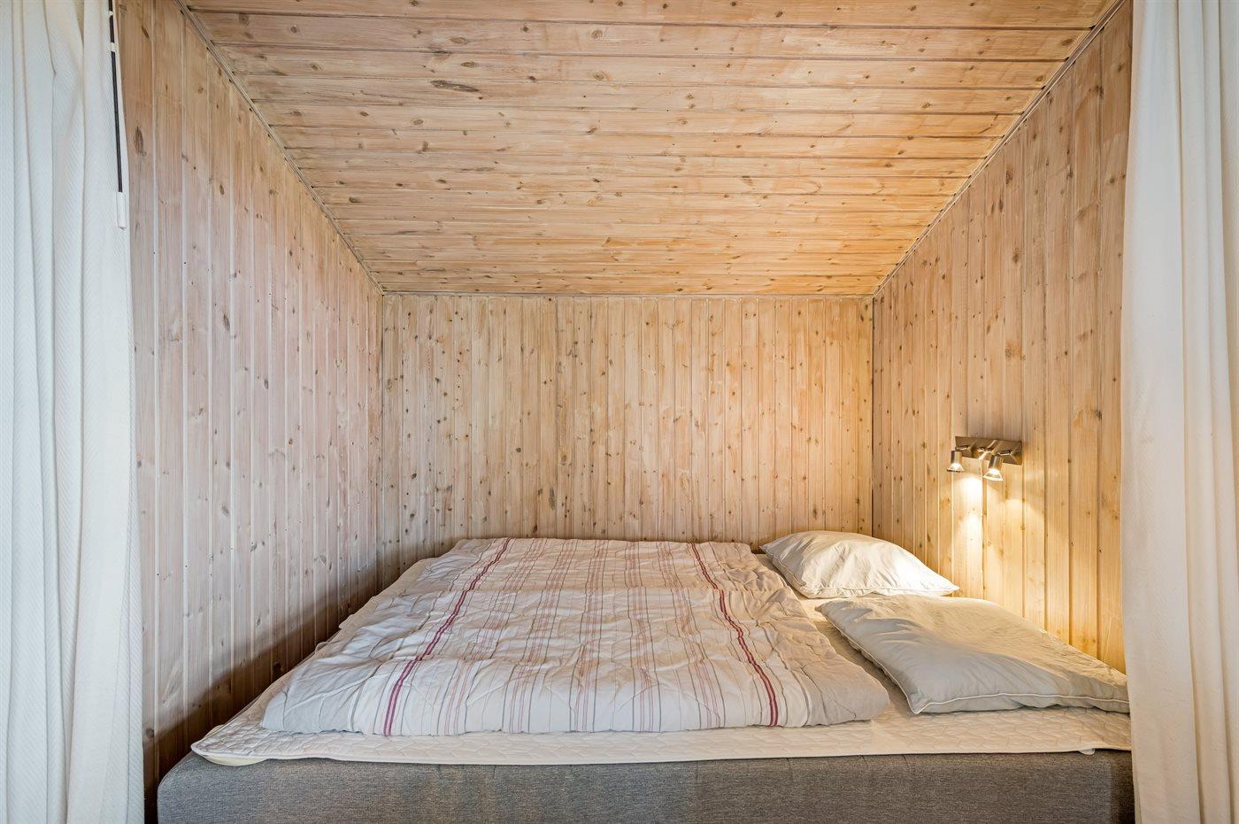 Der er i alt 2 soveværelser. Sovepladserne fordeler sig på: 2 sovepladser i dobbeltseng. 1 soveplads i enkeltseng. 2 sovepladser i alkove. 2 af disse sovepladser befinder sig i stuen.