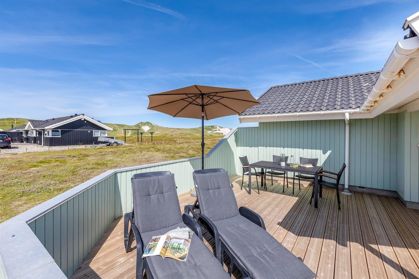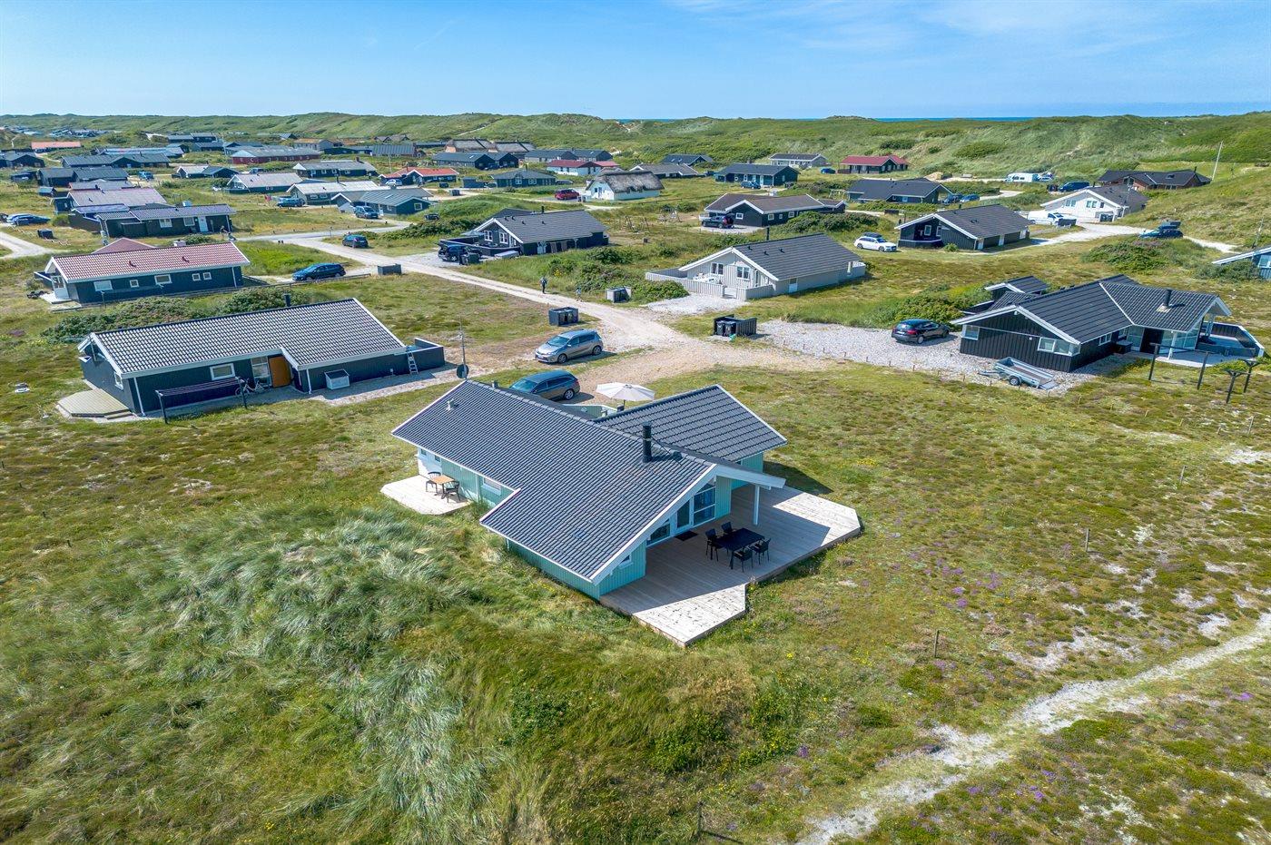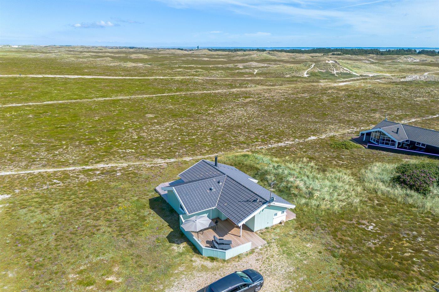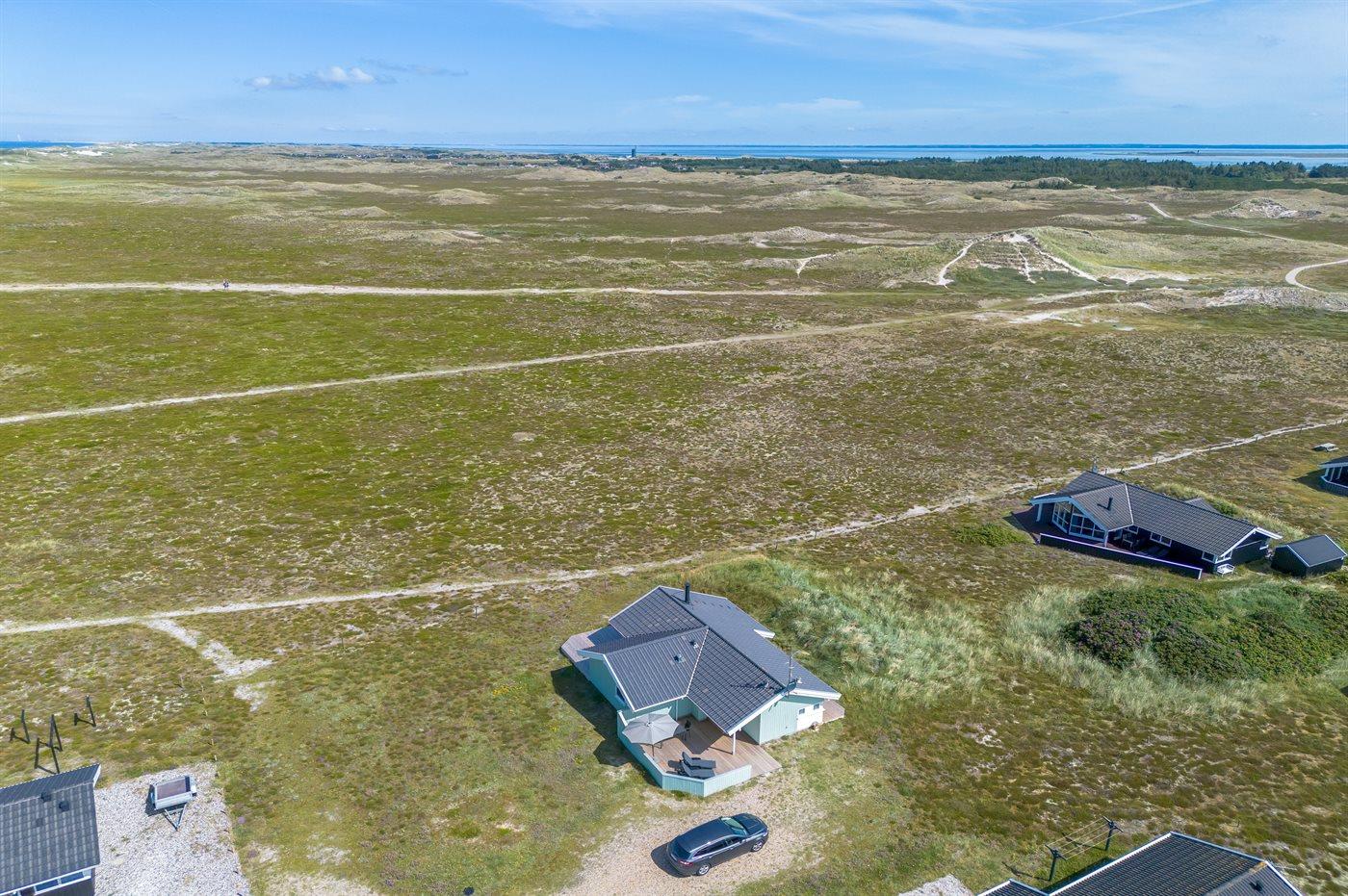 Ferieboligen er beliggende på en 1200 m² stor klitgrund. naturgrund. Der er 150 m til havet. Der er 1200 m til fjorden. Nærmeste forretning er beliggende i en afstand af 900 m. Til ferieboligen hører 30 m² terrasseareal. Desuden er der 6 m² overdækket terrasse. Der er redskabsrum. Parkering ved ferieboligen.