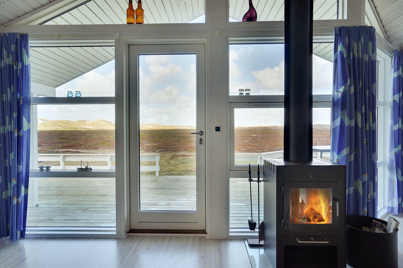 Skønt luksussommerhus i træ med spa og sauna, kun 150 m fra Vesterhavet på naturskøn klitgrund.