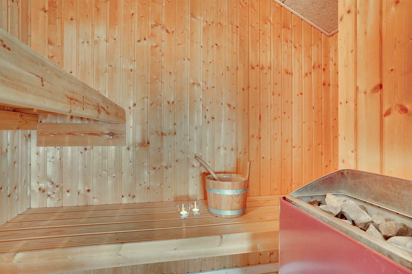 Der er 1 badeværelse med bruseniche og 1 toilet.. Der er gulvvarme på 1 badeværelse. I saunaen er der mulighed for afslapning.