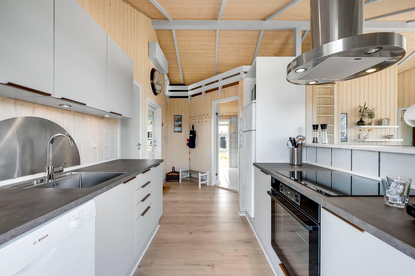 Køkkenet er udstyret med 1 køleskab. Der er 4 keramiske kogeplader, varmluftovn, mikrobølgeovn samt opvaskemaskine.