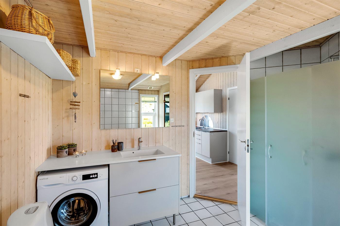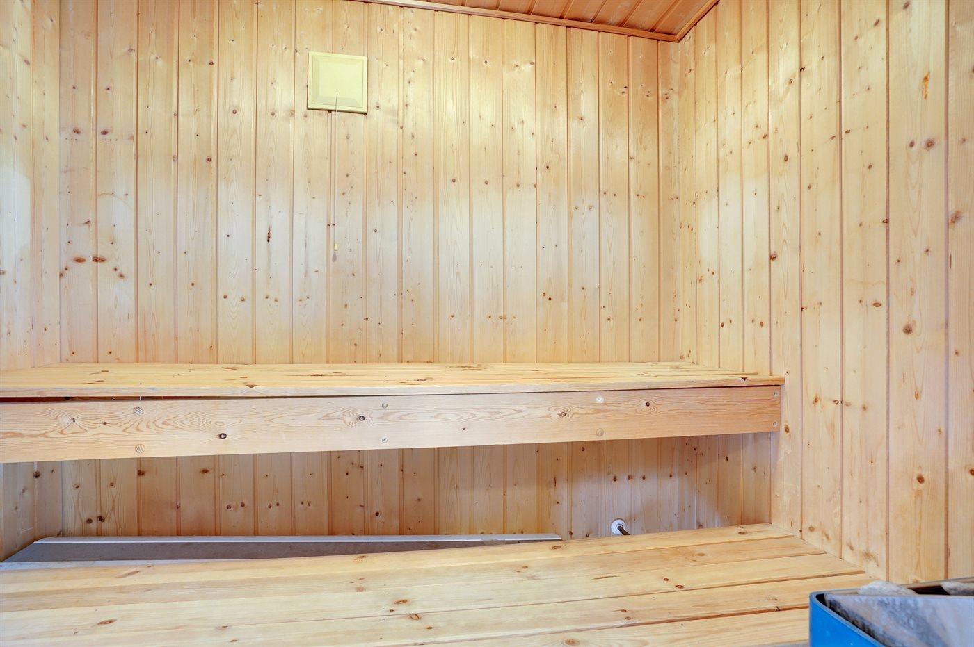 Der er 1 badeværelse med bruser og 1 toilet.. Der er gulvvarme på 1 badeværelse. I saunaen er der mulighed for afslapning.