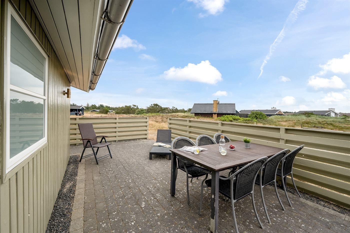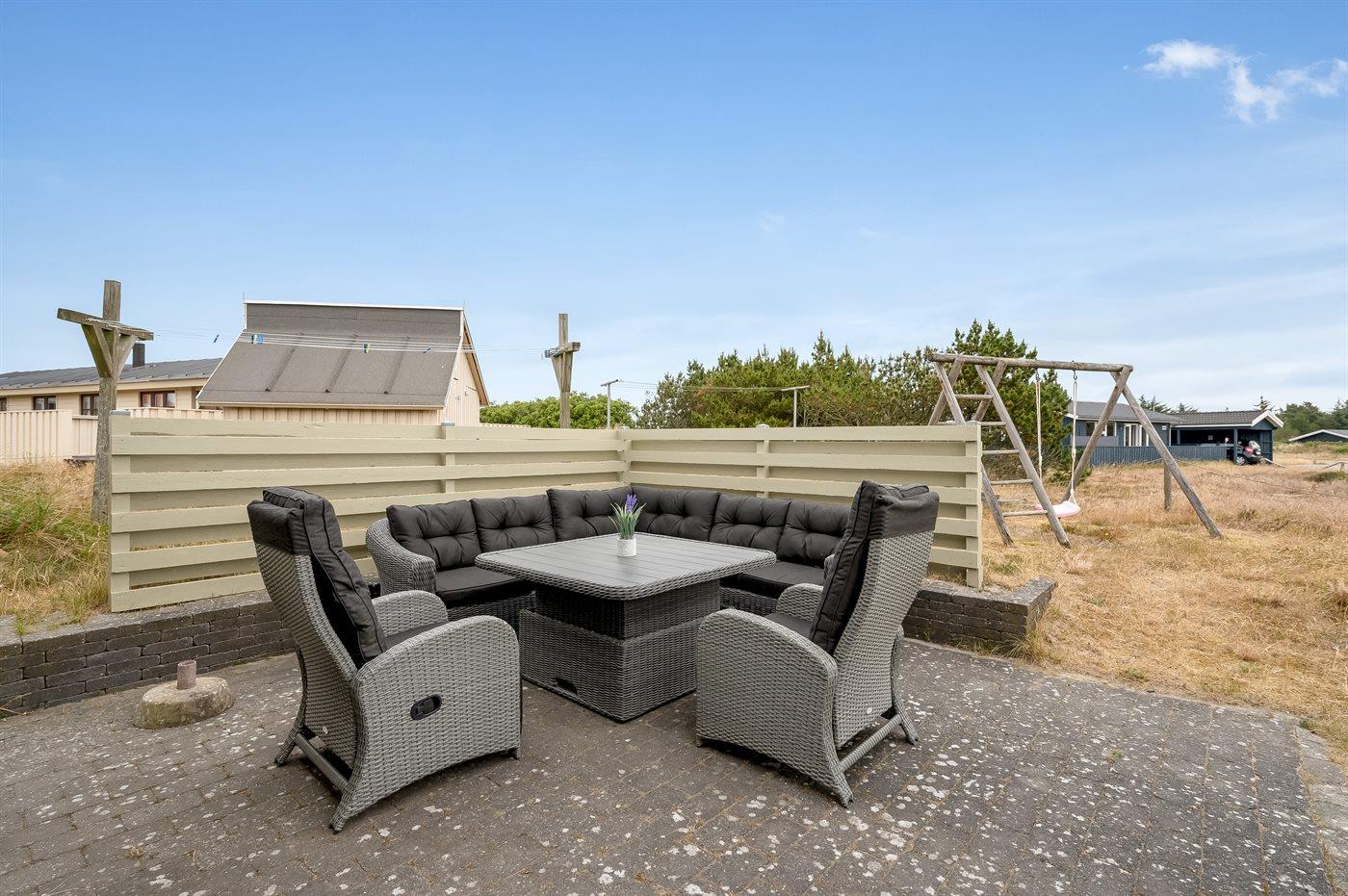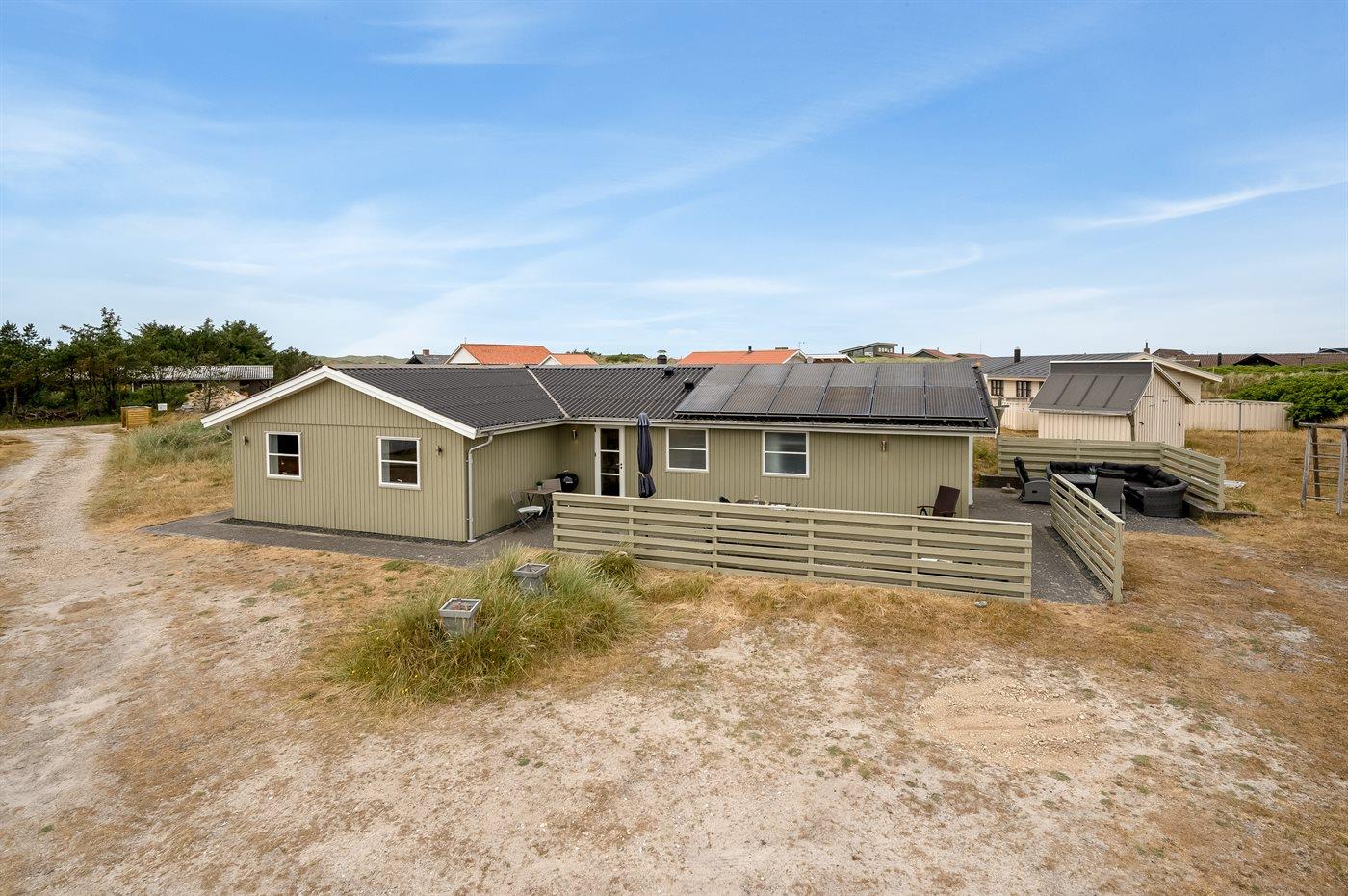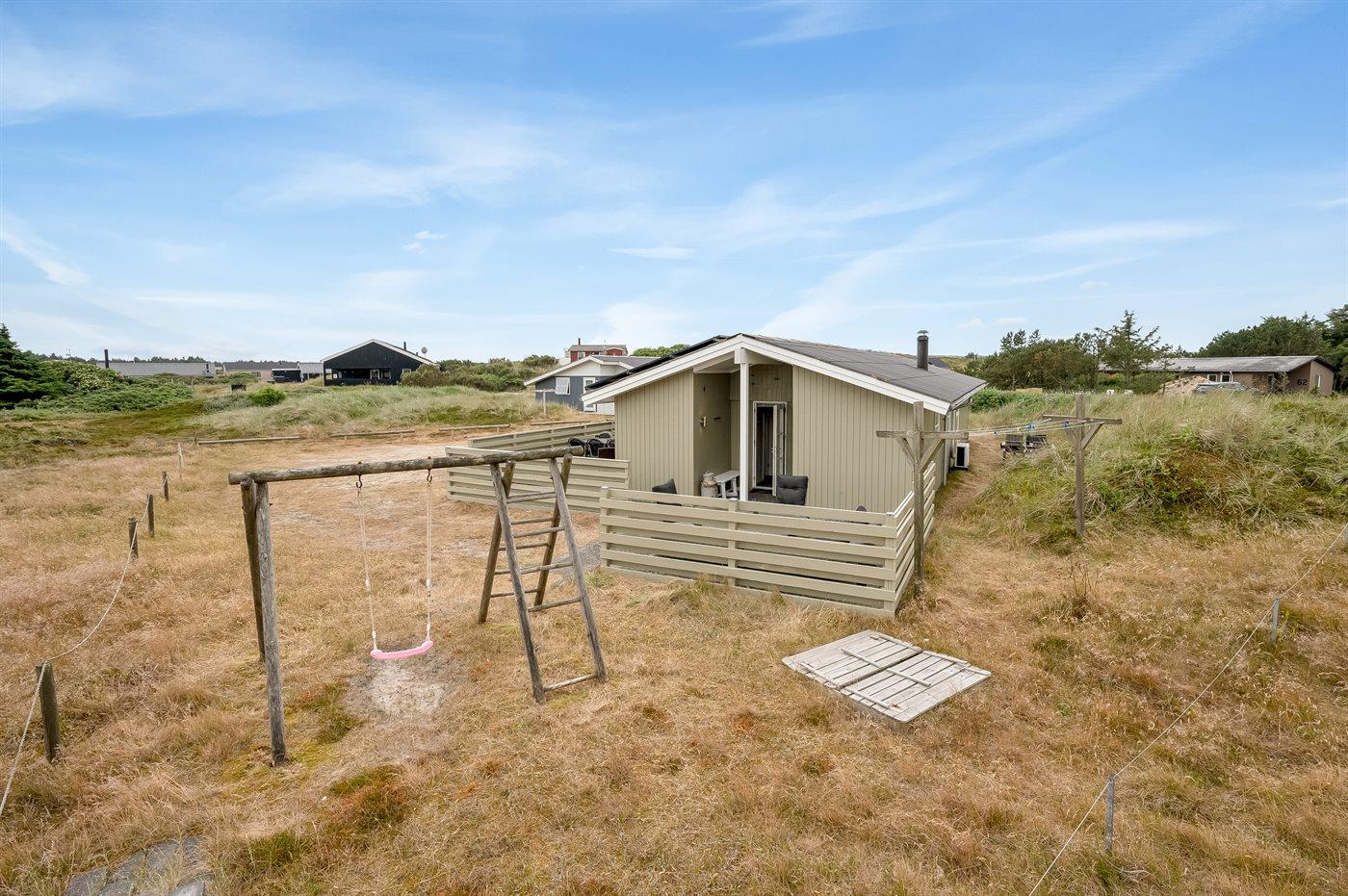 Dette dejlige sommerhus ligger på en let kuperet natur-/klitgrund i rolige omgivelser. Til huset hører et dejlig stort og til dels overdækket terrasseareal med havemøbler.