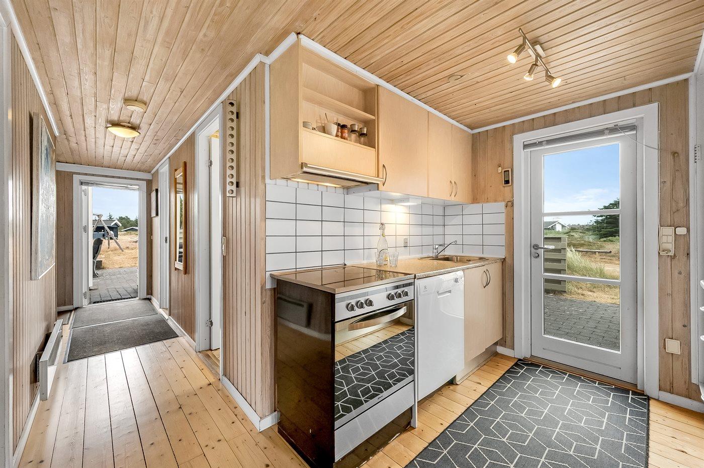 Køkkenet er udstyret med 1 køleskab. Der er 4 keramiske kogeplader, bageovn, mikrobølgeovn samt opvaskemaskine.
