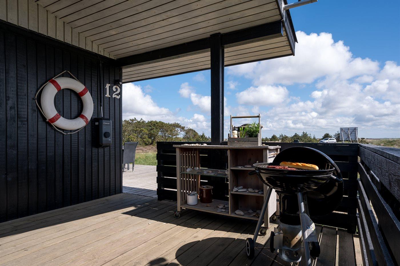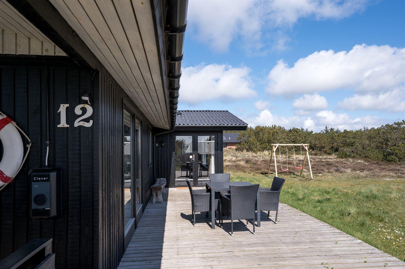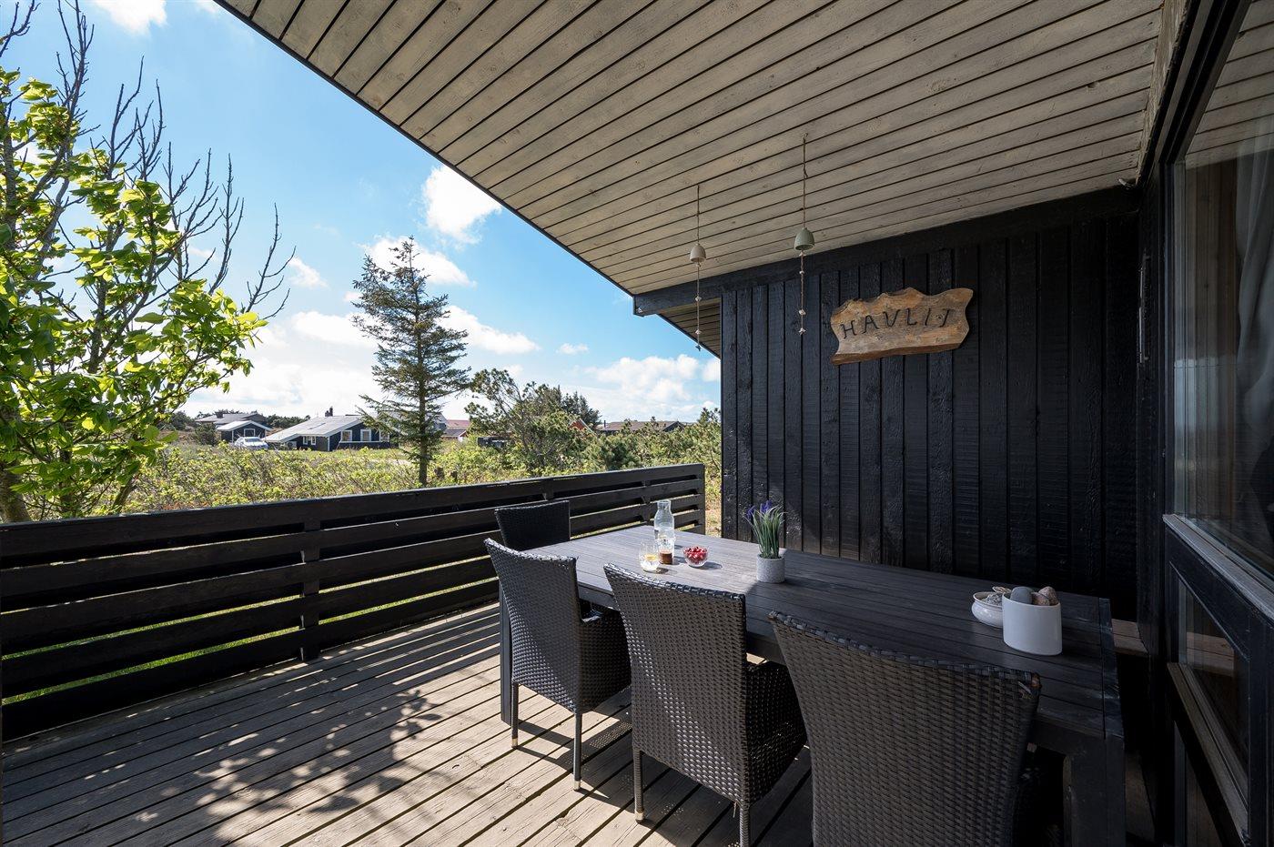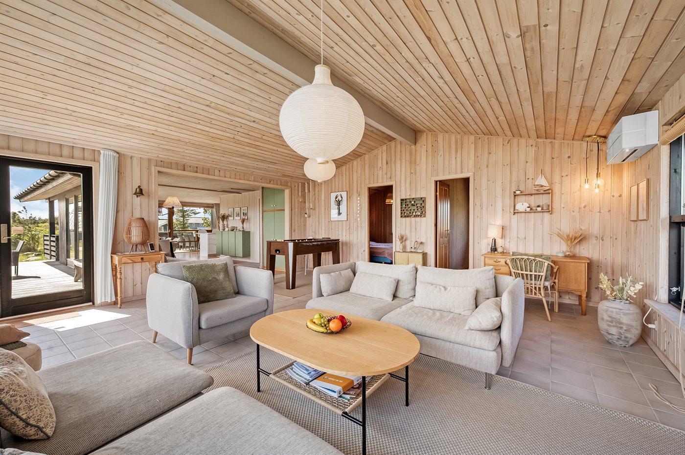 Et dejligt velholdt og godt indrettet sommerhus i træ, beliggende på en stort lyngklædt natur/-klitgrund. Gennem de store vinduer i stuen, er der en fantastisk udsigt over naturområdet med fjorden i baggrunden.
