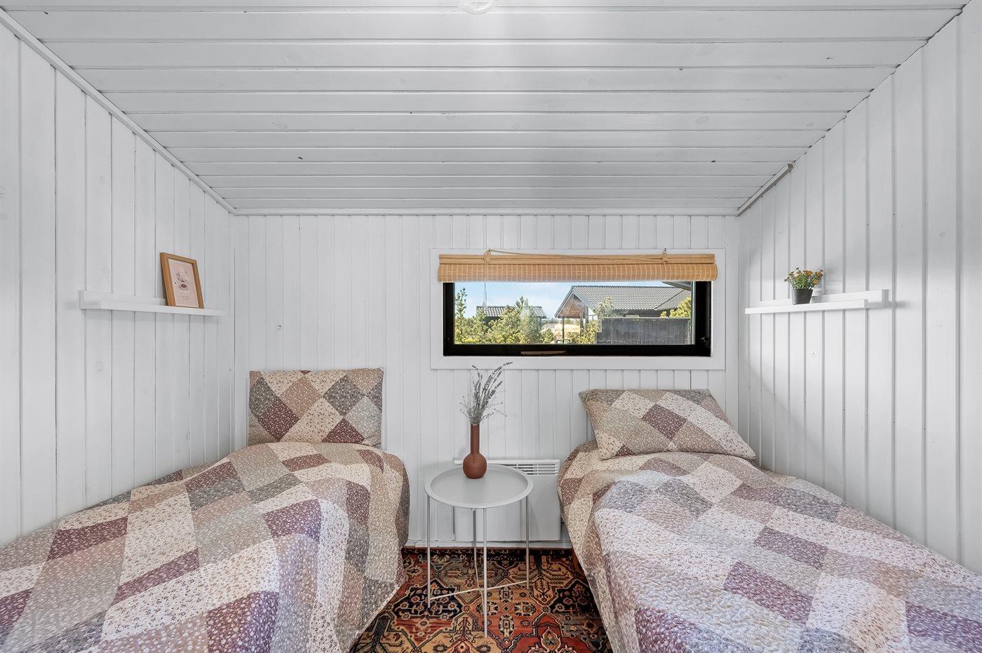 Der er i alt 3 soveværelser. Sovepladserne fordeler sig på: 4 sovepladser i dobbeltsenge. 2 sovepladser i enkeltsenge. Derudover er der 1 stk. barneseng.