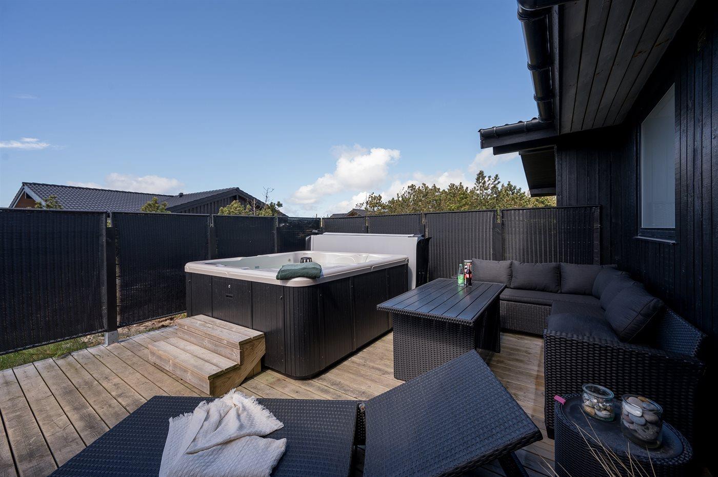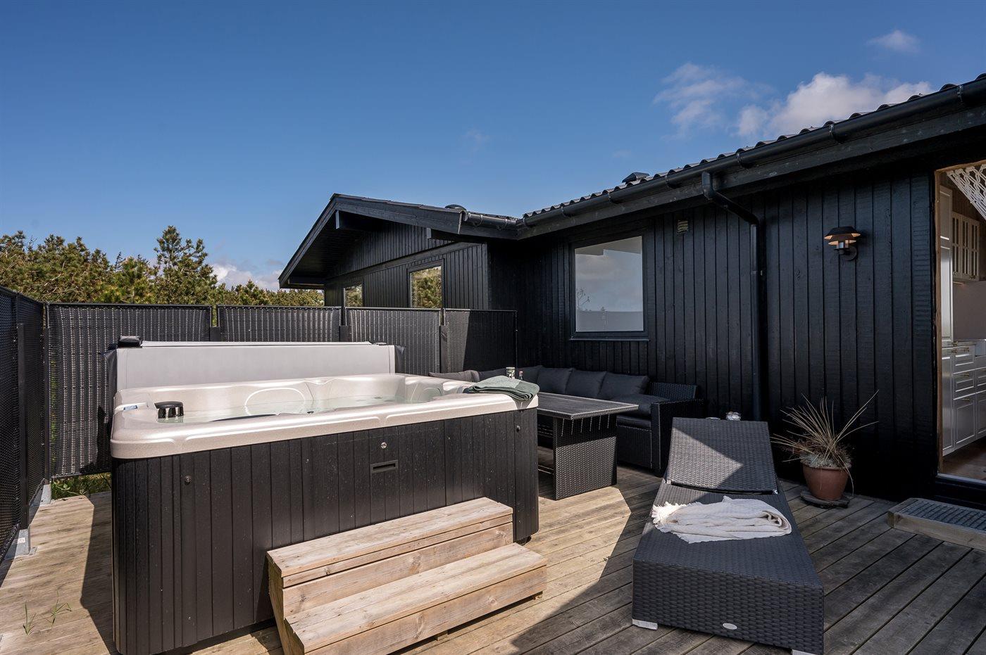 Der er mulighed for afslapning i indendørs spa til 2 personer. Der er mulighed for afslapning i udendørs standvandsspa til 6 personer.