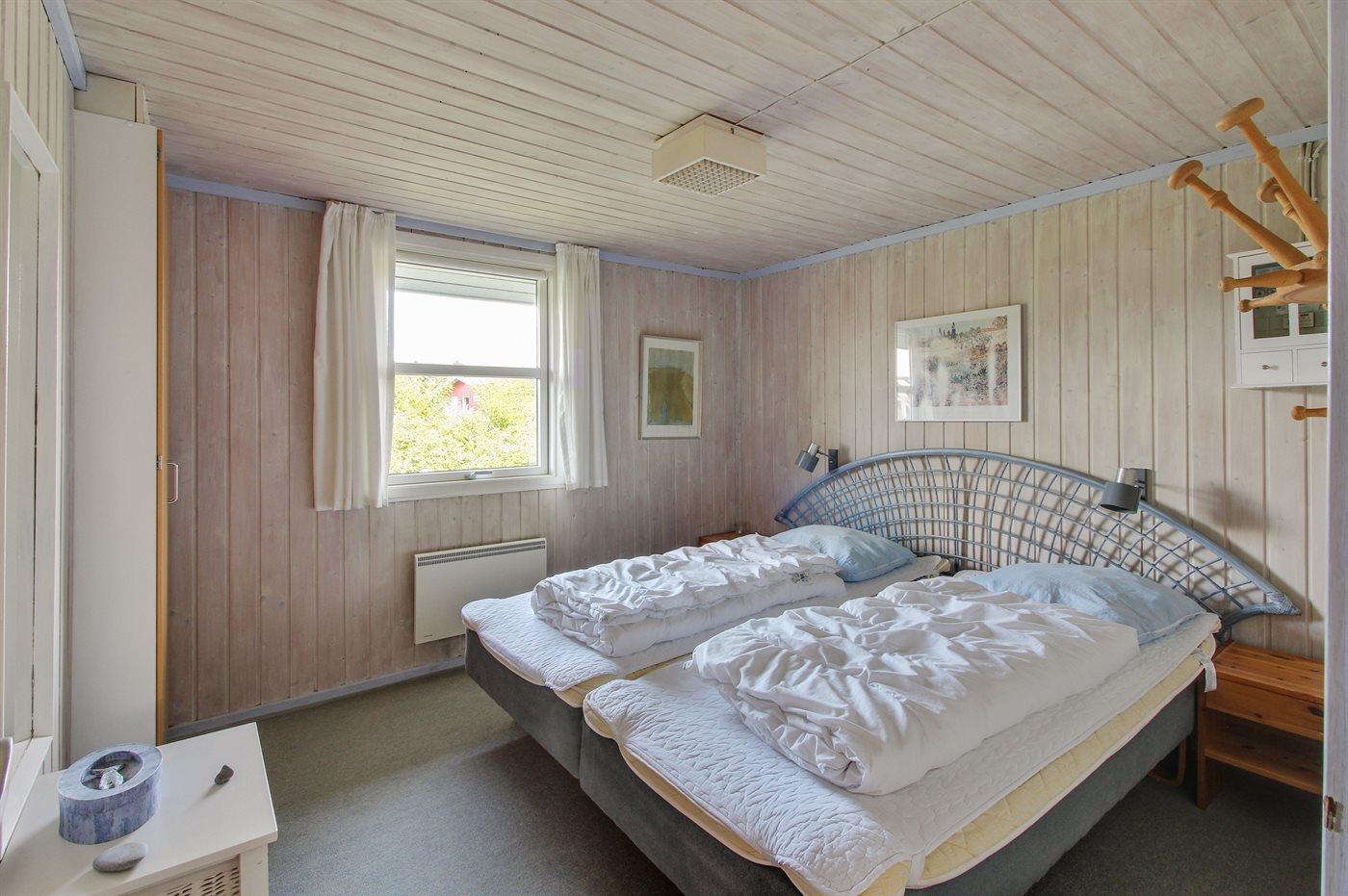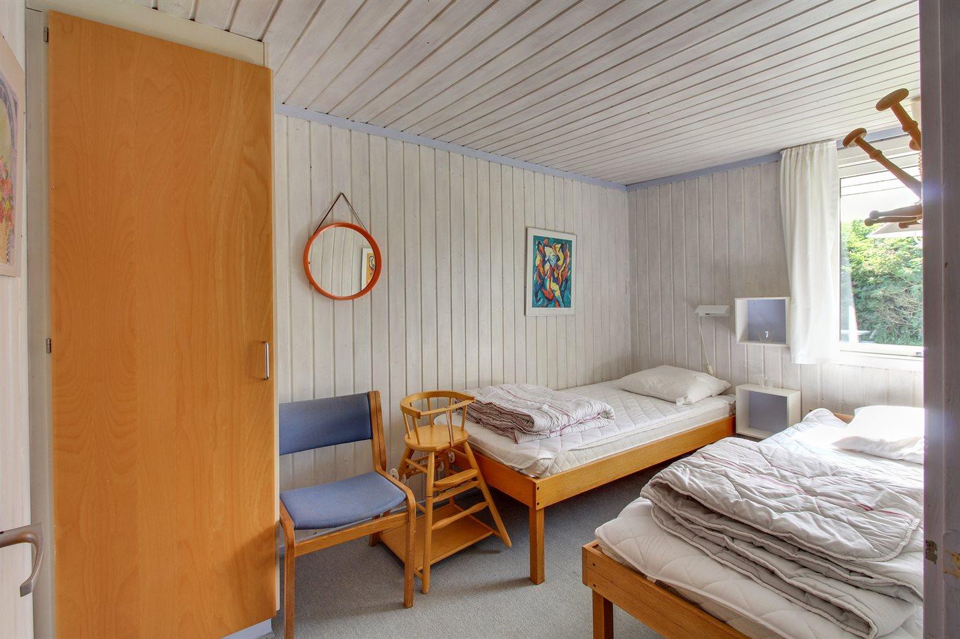 Der er i alt 3 soveværelser. Sovepladserne fordeler sig på: 2 sovepladser i dobbeltseng. 2 sovepladser i enkeltsenge. 2 sovepladser i køjeseng. Derudover er der 1 stk. barneseng.