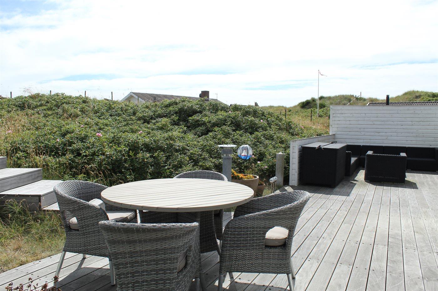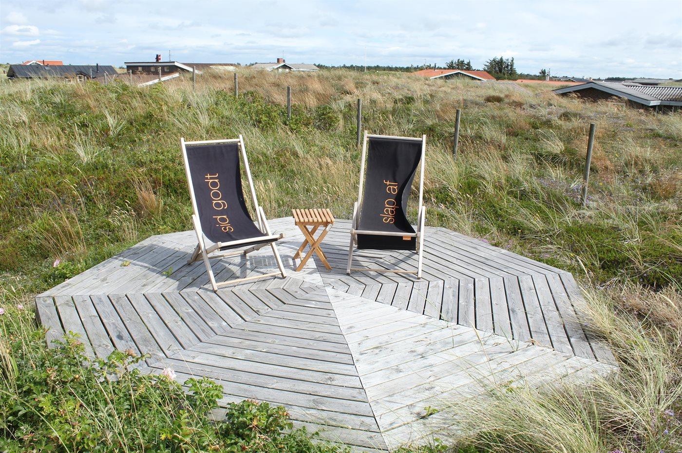 Ferieboligen er beliggende på en 1275 m² stor naturgrund. Der er 200 m til havet. Der er 1500 m til fjorden. Nærmeste forretning er beliggende i en afstand af 1000 m. Til ferieboligen hører åbent terrasseareal. Parkering ved ferieboligen.