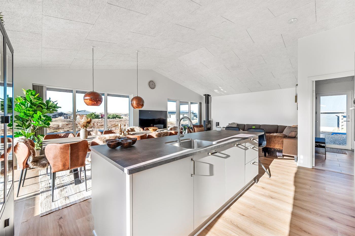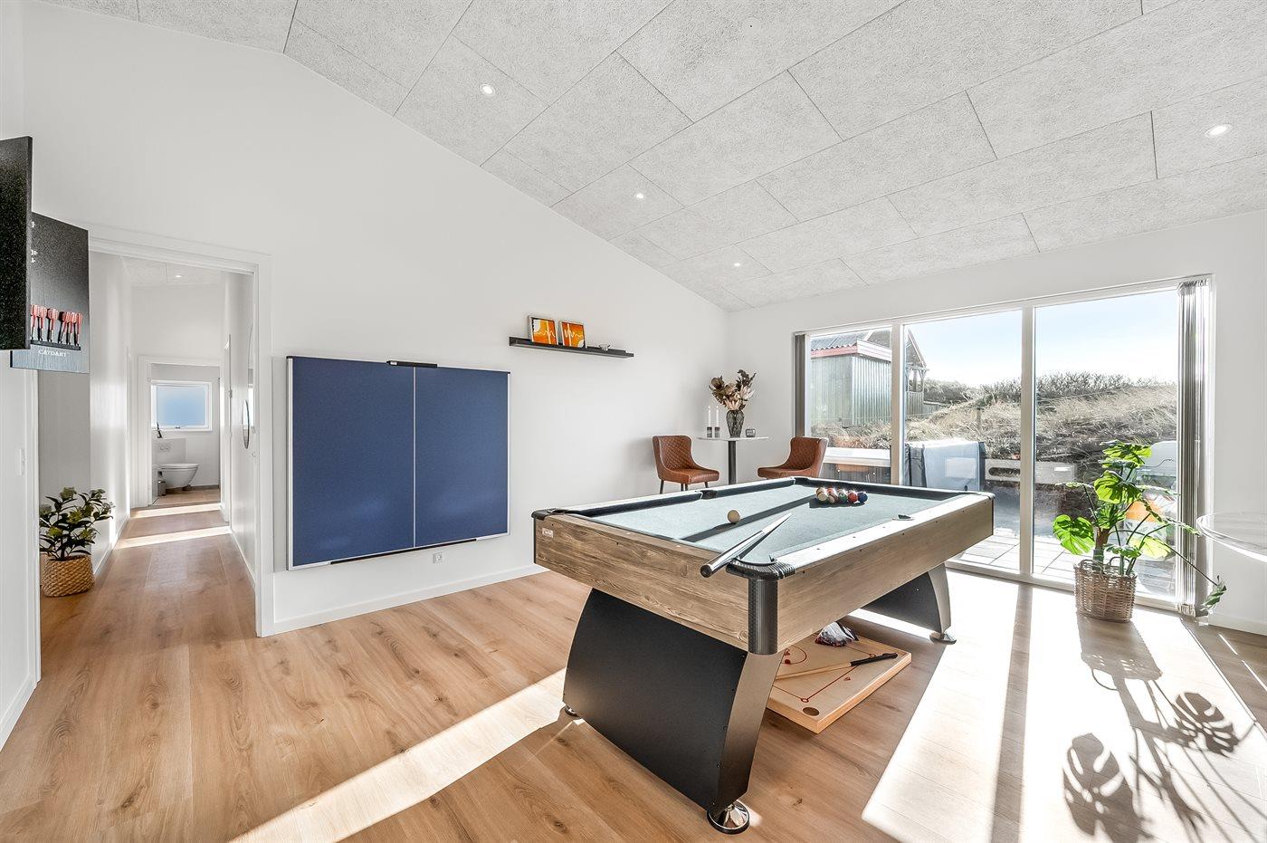 Kunne du tænke dig at tilbringe din ferie i et nybygget aktivitetshus (2024), et hus der er indrettet med sans for detaljen og dansk design, og som oser af høj kvalitet og hygge – så er dette sommerhus ved Vesterhavet noget for dig. Sommerhuset er indrettet til 10 personer og har en unik charme og en æstetik, der er en blanding af minimalisme og funktionalitet.