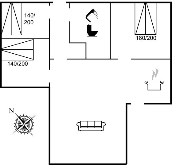 Der er i alt 3 soveværelser. Sovepladserne fordeler sig på: 6 sovepladser i dobbeltsenge.
