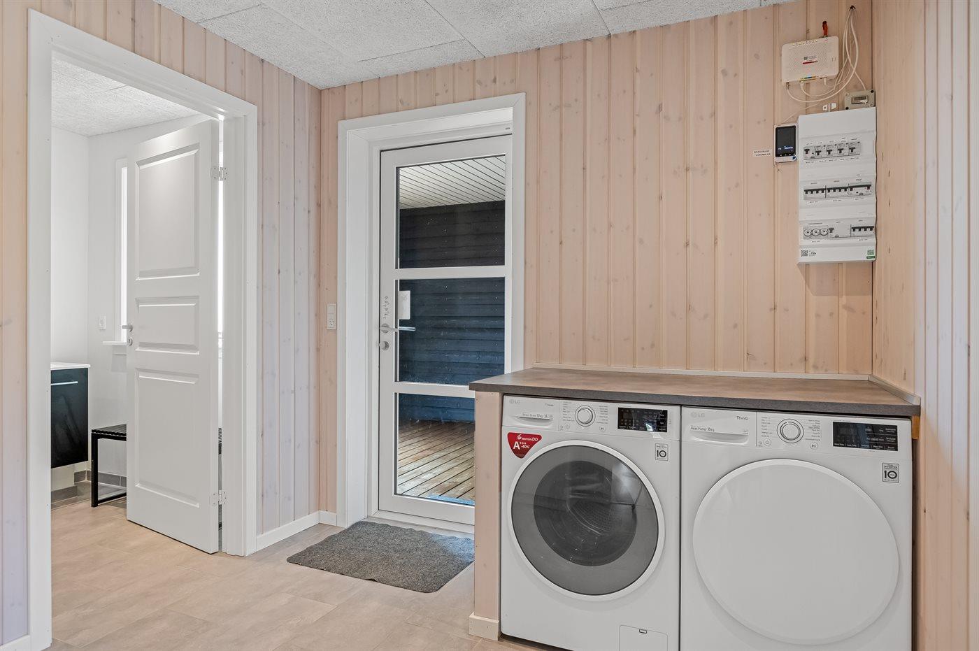 Sommerhuset er indrettet med 5 soveværelser og 2 badeværelser samt et stort bryggers med vaskemaskine og tørretumbler.